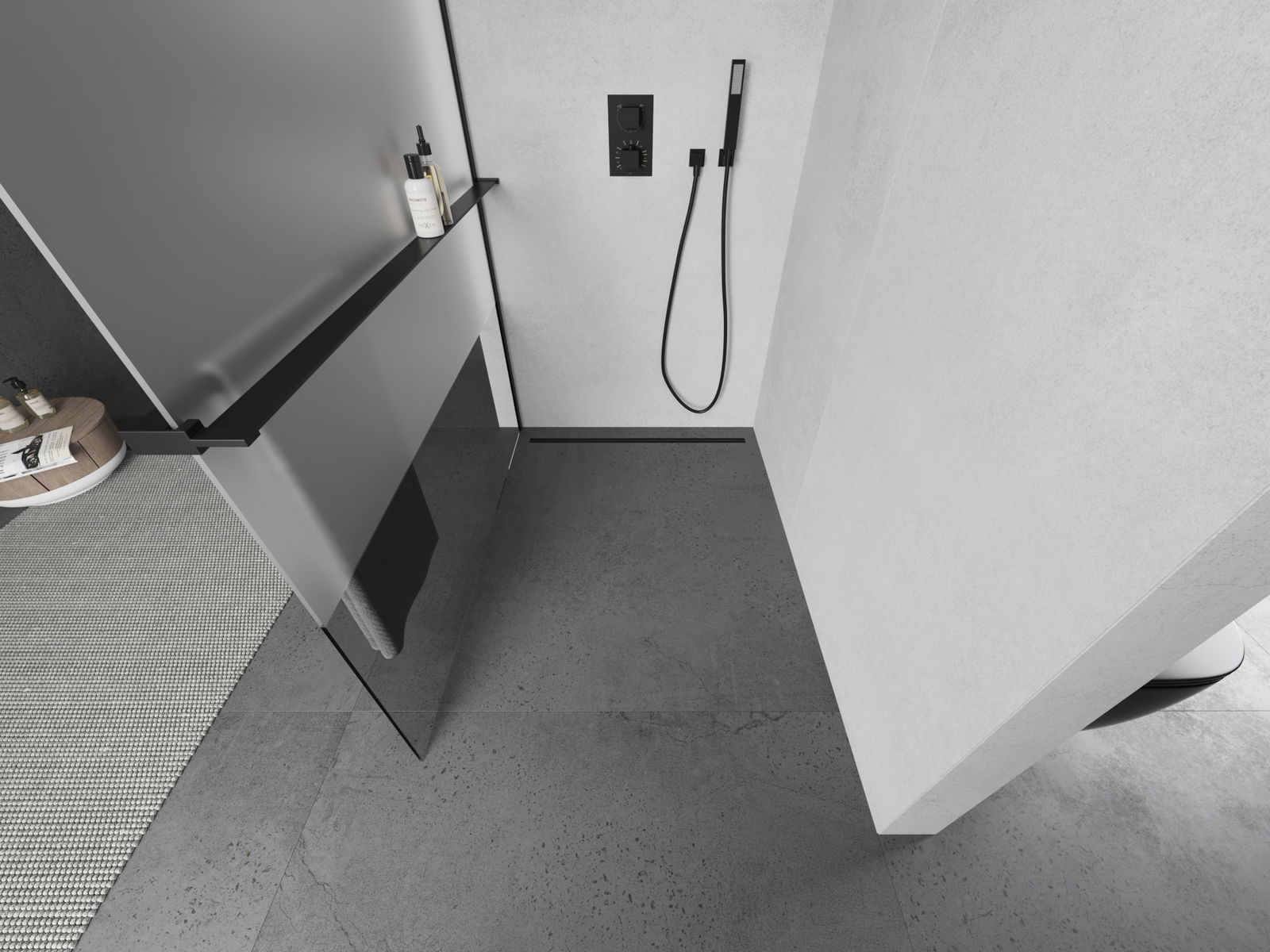 Mexen Kioto+ zuhanyfal polccal Walk-in 120 x 200 cm, áttetsző/fagyos, fekete - 800-120-121-70-35