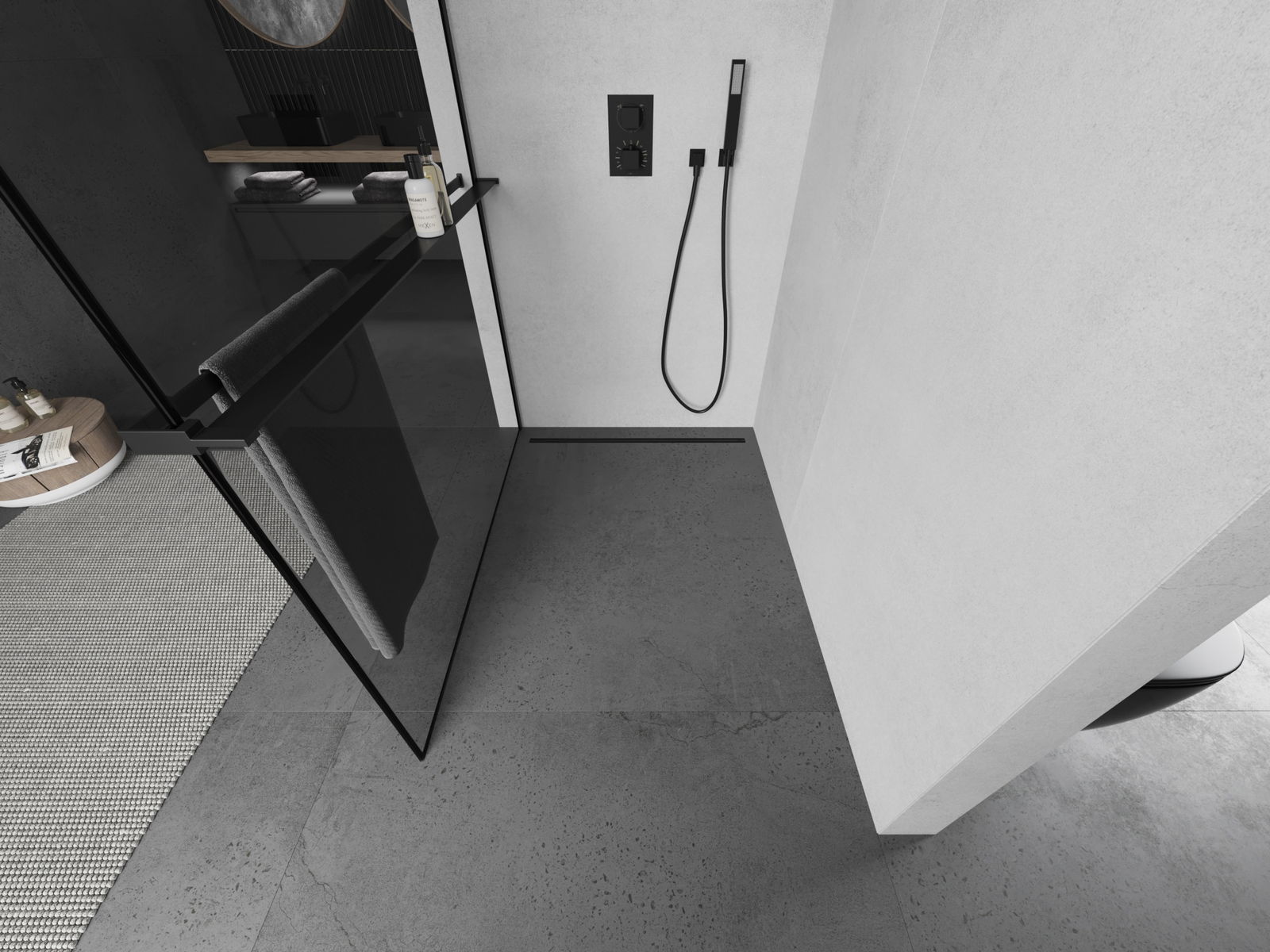 Mexen Kioto+ zuhanyfal polccal Walk-in 70 x 200 cm, fekete keret, fekete - 800-070-121-70-70