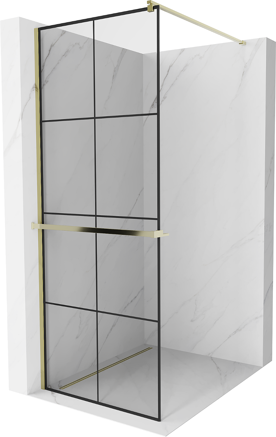 Mexen Kioto+ zuhanyfal polccal Walk-in 70 x 200 cm, fekete rács, arany - 800-070-121-50-77