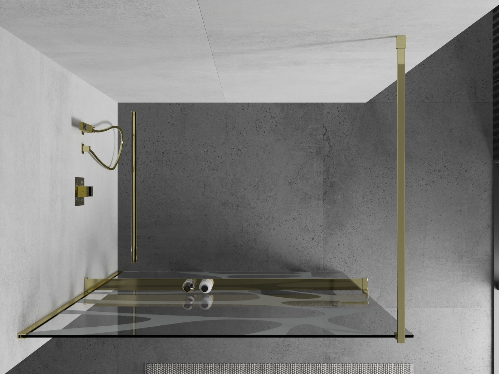 Mexen Kioto+ zuhanyfal polccal, Walk-in 90 x 200 cm, fehér hullám, arany - 800-090-121-50-97