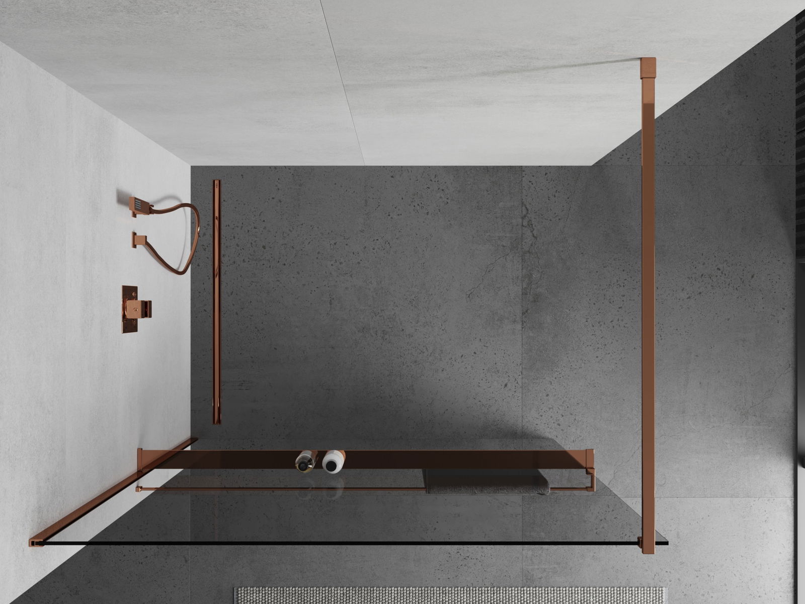 Mexen Kioto+ zuhanyfal polccal Walk-in 100 x 200 cm, átlátszó, rózsaarany - 800-100-121-60-00
