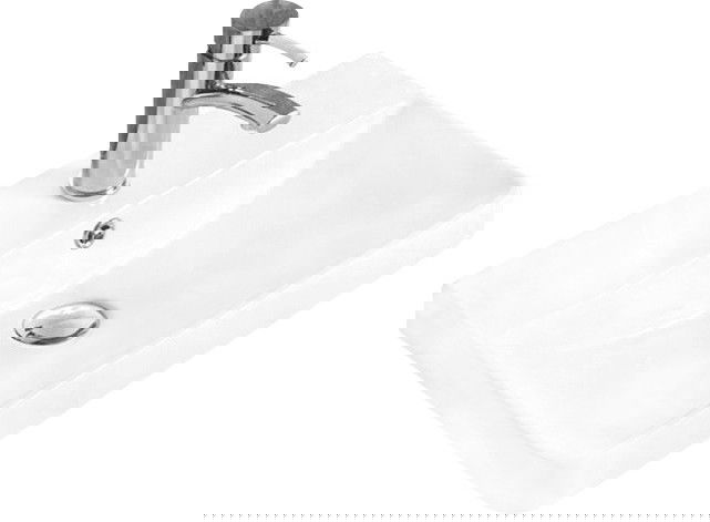 A mosogatónak van egy lyuk, amelybe fel tudjuk szerelni az akkumulátort. Ez értékes helyet takarít meg a fürdőszobában, és hangsúlyozza annak esztétikáját. Ez a megoldás lehetővé teszi, hogy könnyen tisztán tartsa a mosogatót.