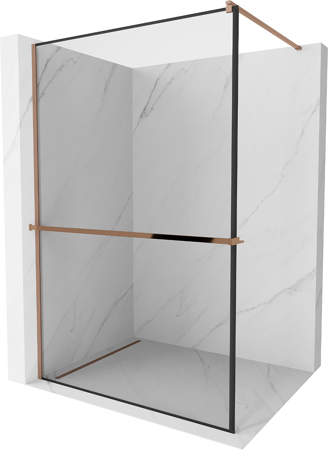 Mexen Kioto+ zuhanyfal polccal Walk-in 130 x 200 cm, fekete keret, rózsaszín arany - 800-130-121-60-70
