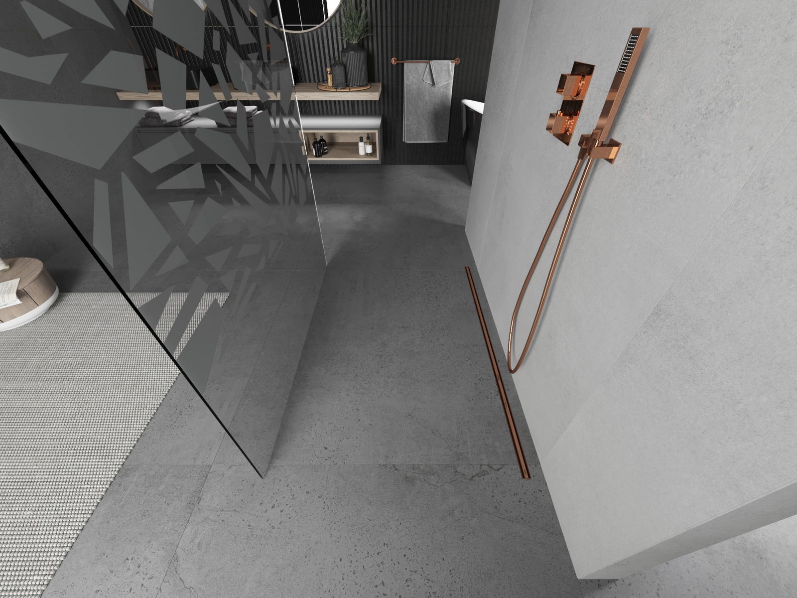 Mexen Kioto szabadonálló zuhanyfal 120 x 200 cm, fehér mintával 8 mm, rózsaszín arany - 800-120-002-60-85