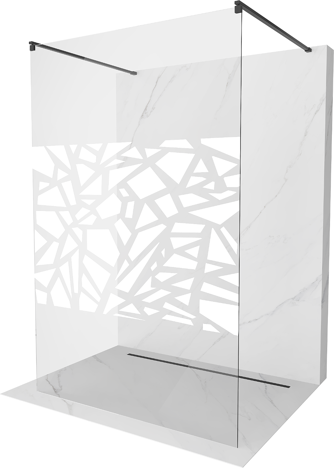 Mexen Kioto szabadon álló zuhanyfal 130 x 200 cm, fehér minta 8 mm, fekete - 800-130-002-70-85
