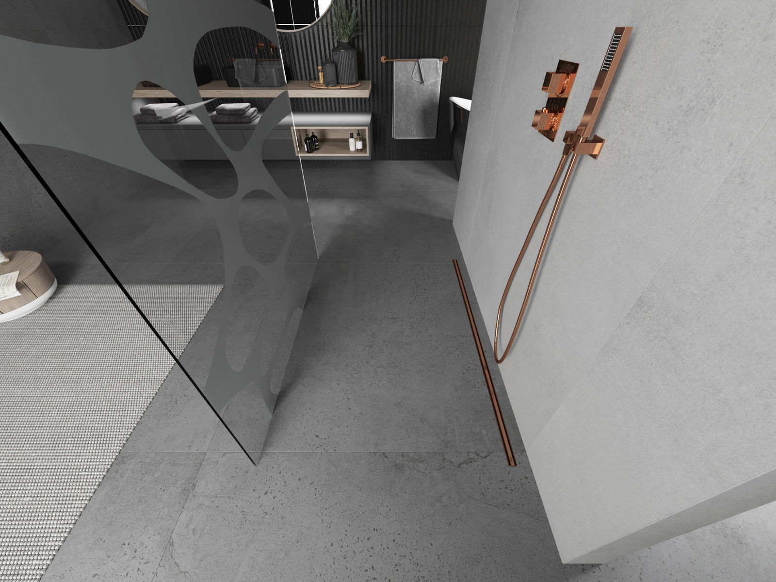Mexen Kioto szabadon álló zuhanyfal 140 x 200 cm, fehér hullám 8 mm, rózsaarany - 800-140-002-60-97