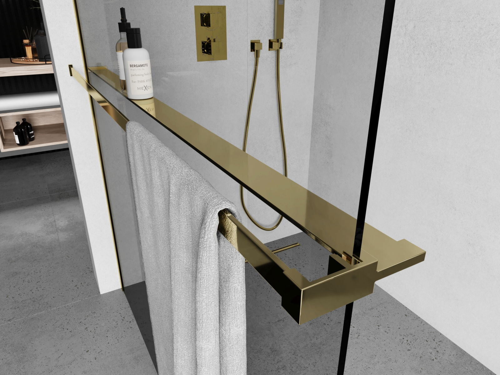 Mexen polc zuhanyfalhoz törölközőtartóval, arany - 800-02-50
