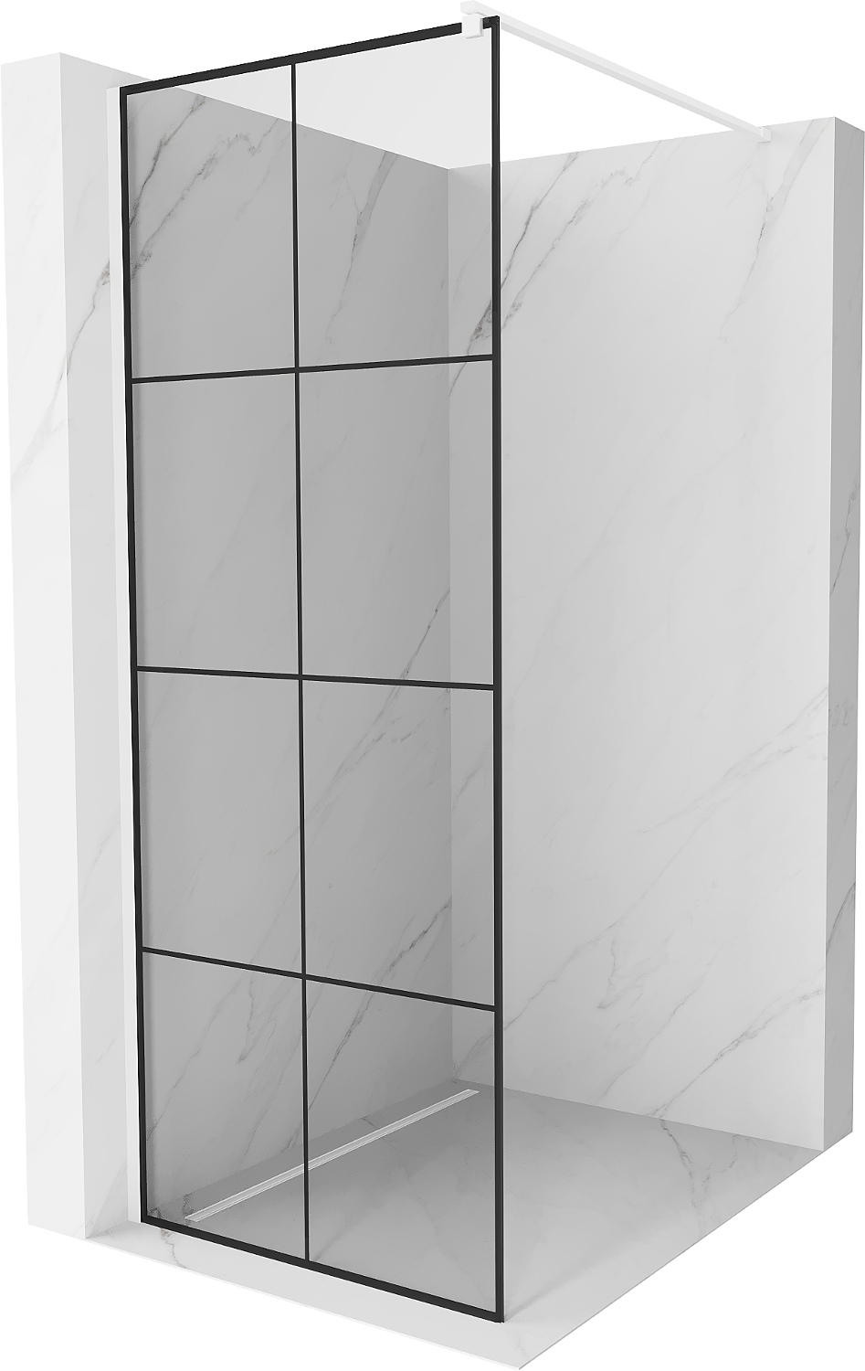 Mexen Kioto Walk-in zuhanyfal 70 x 200 cm, fekete rács 8 mm, fehér - 800-070-101-20-77
