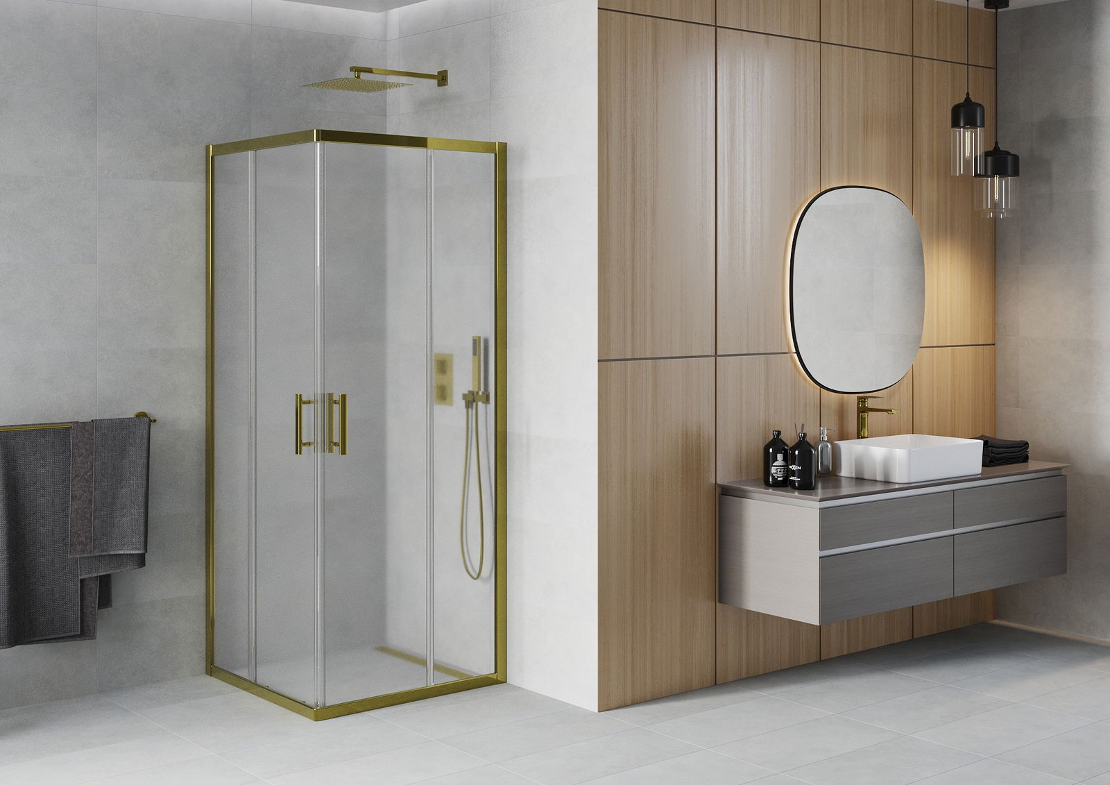 Mexen Rio szögletes zuhanykabin 90 x 90 cm, jégvirágos, arany - 860-090-090-50-30
