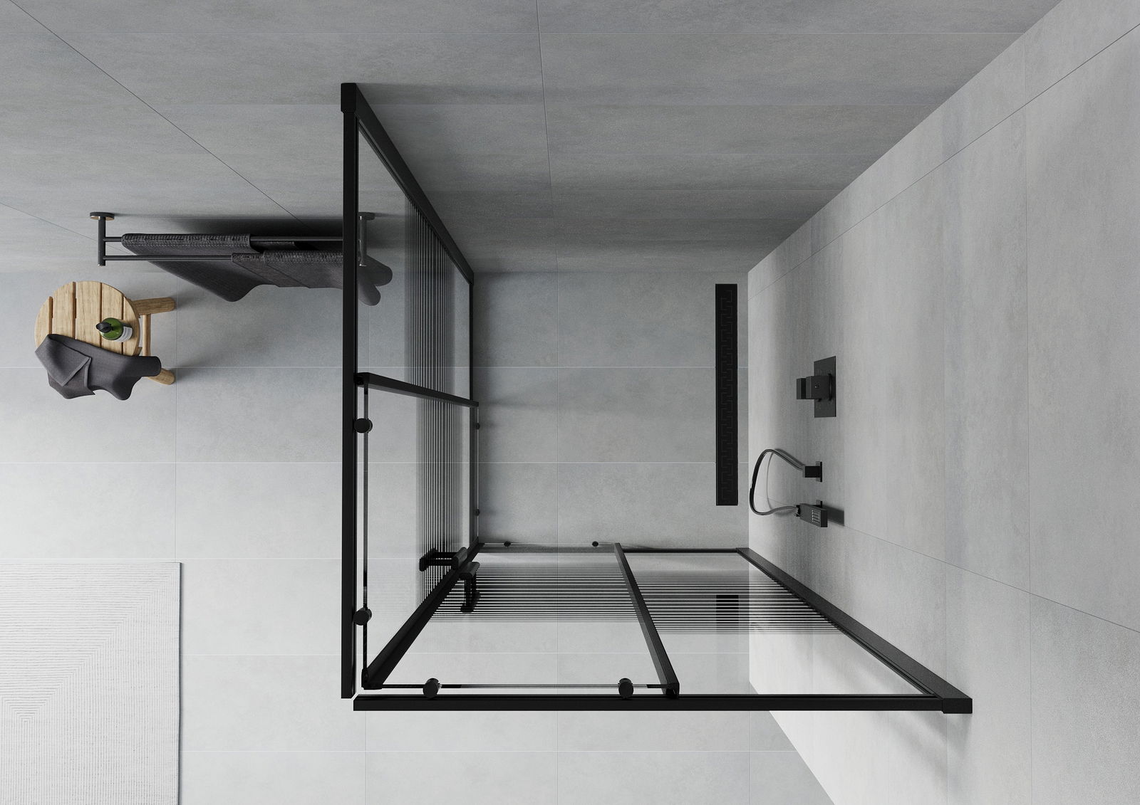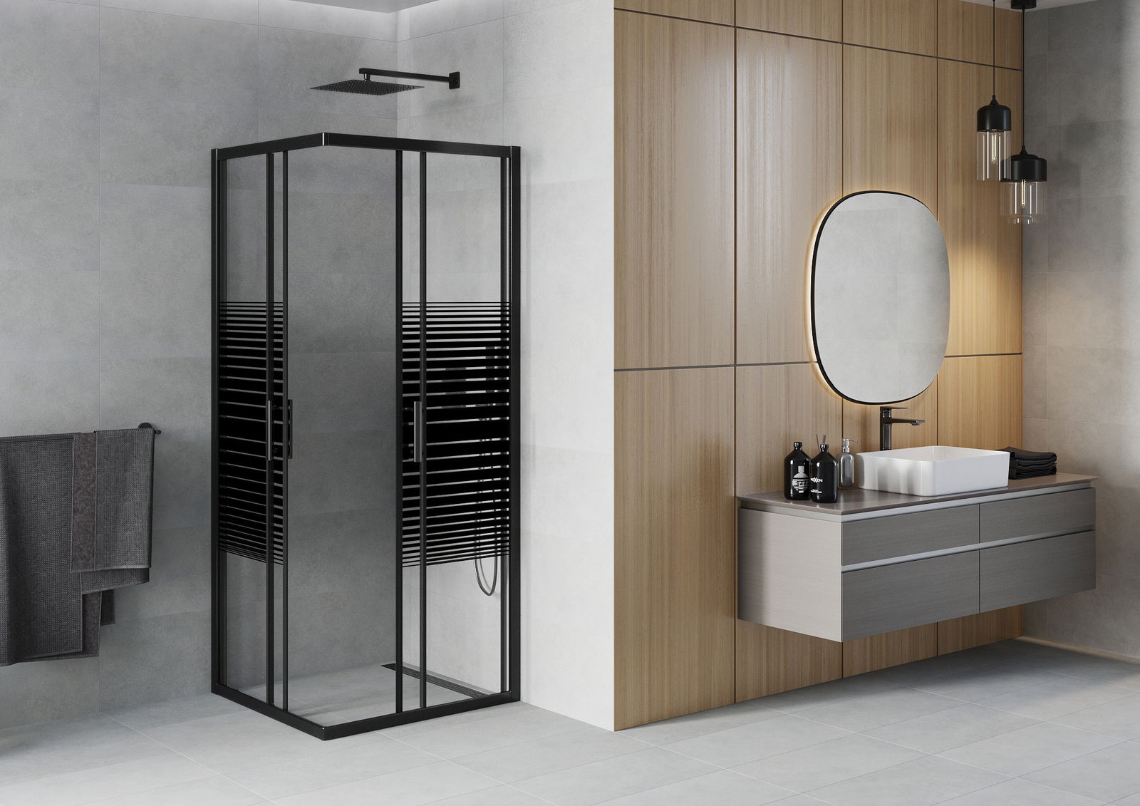 Mexen Rio négyzet alakú zuhanykabin 80 x 80 cm, fekete sávok, fekete - 860-080-080-70-20