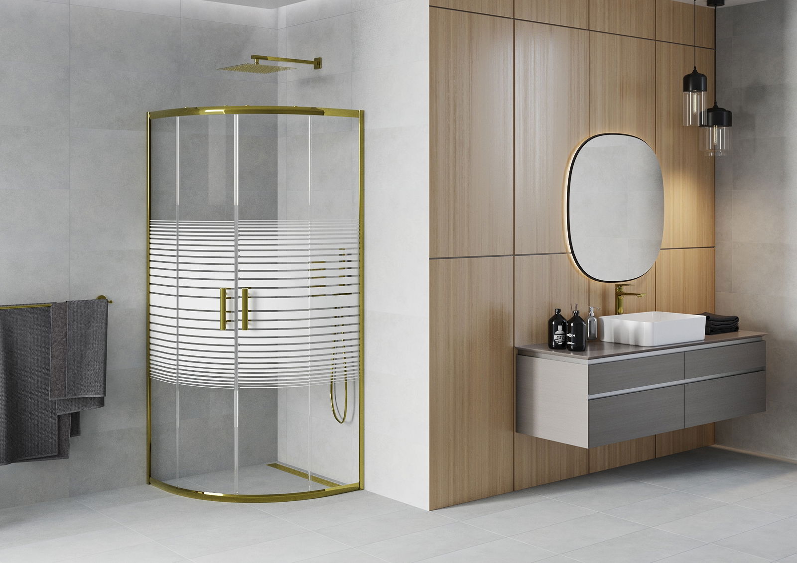 Mexen Rio köríves zuhanykabin 80 x 80 cm, fehér csíkok, arany - 863-080-080-50-20