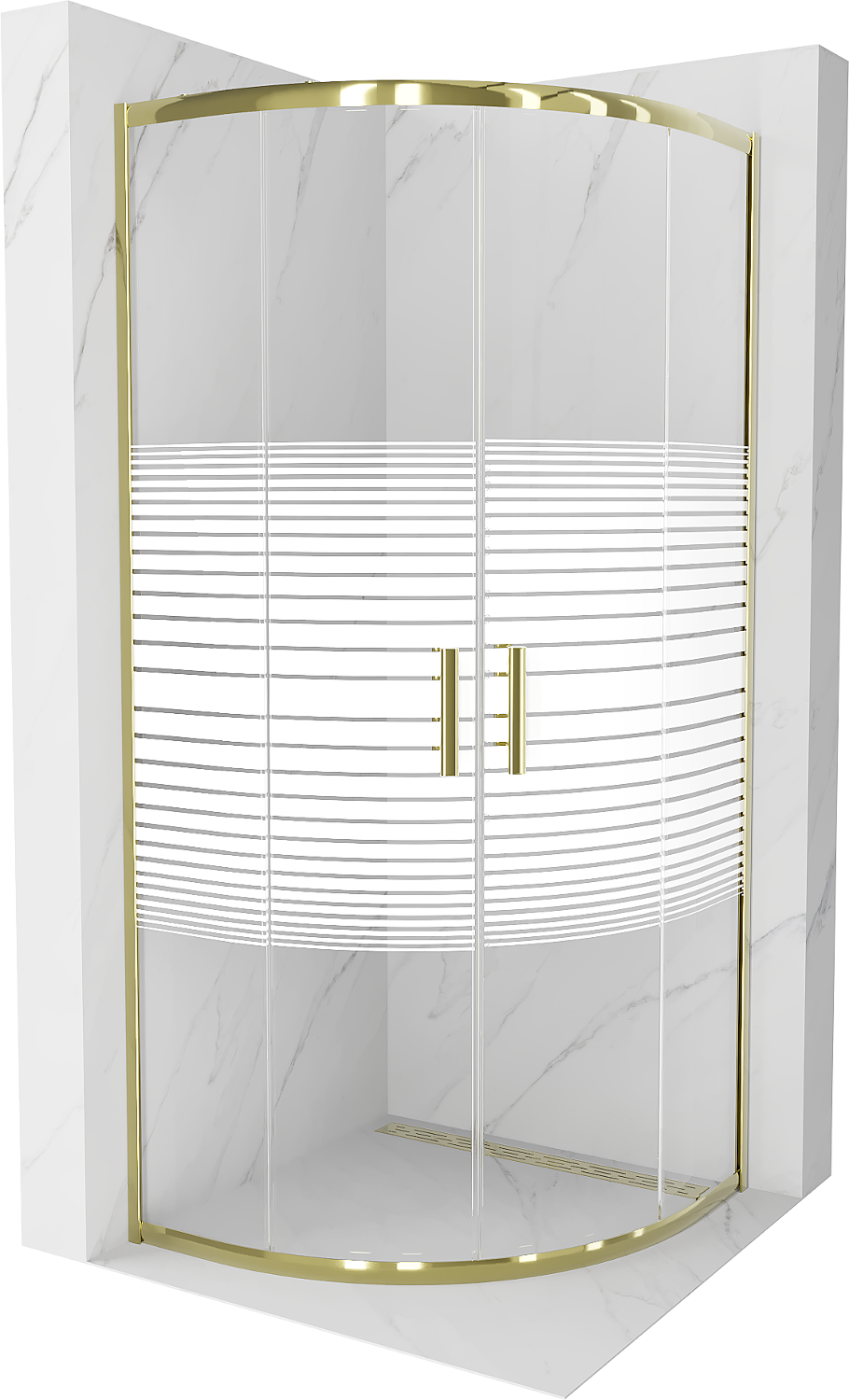 Mexen Rio 90 x 90 cm-es félkör alakú zuhanykabin, fehér csíkok, arany - 863-090-090-50-20