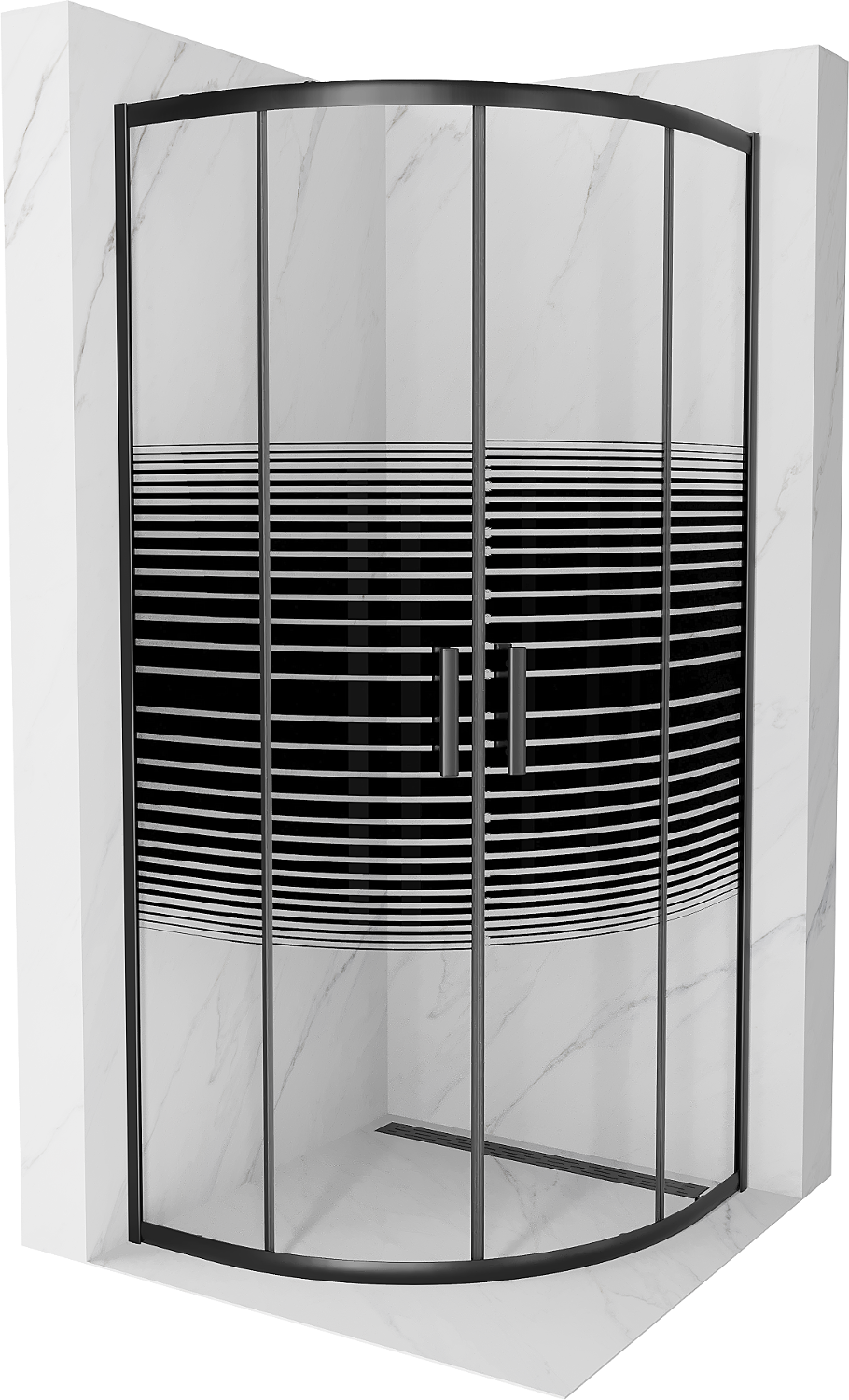 Mexen Rio félköríves zuhanykabin 90 x 90 cm, fekete csíkok, fekete - 863-090-090-70-20