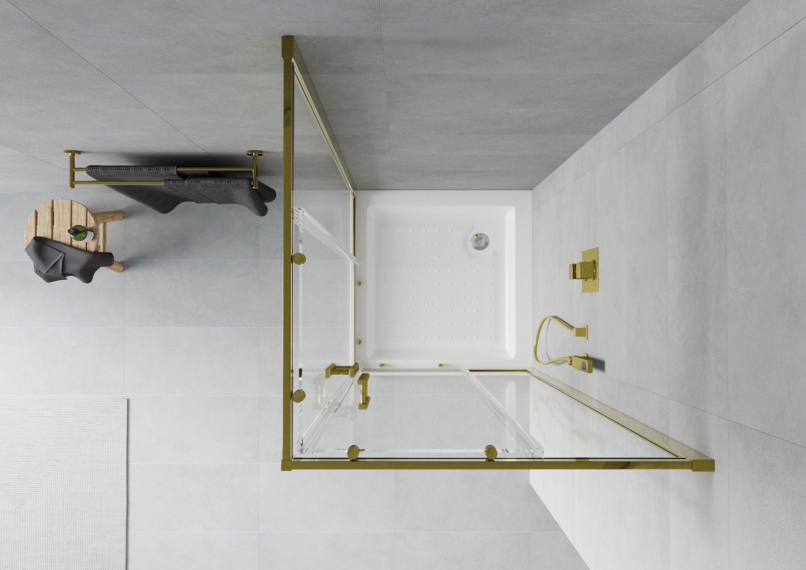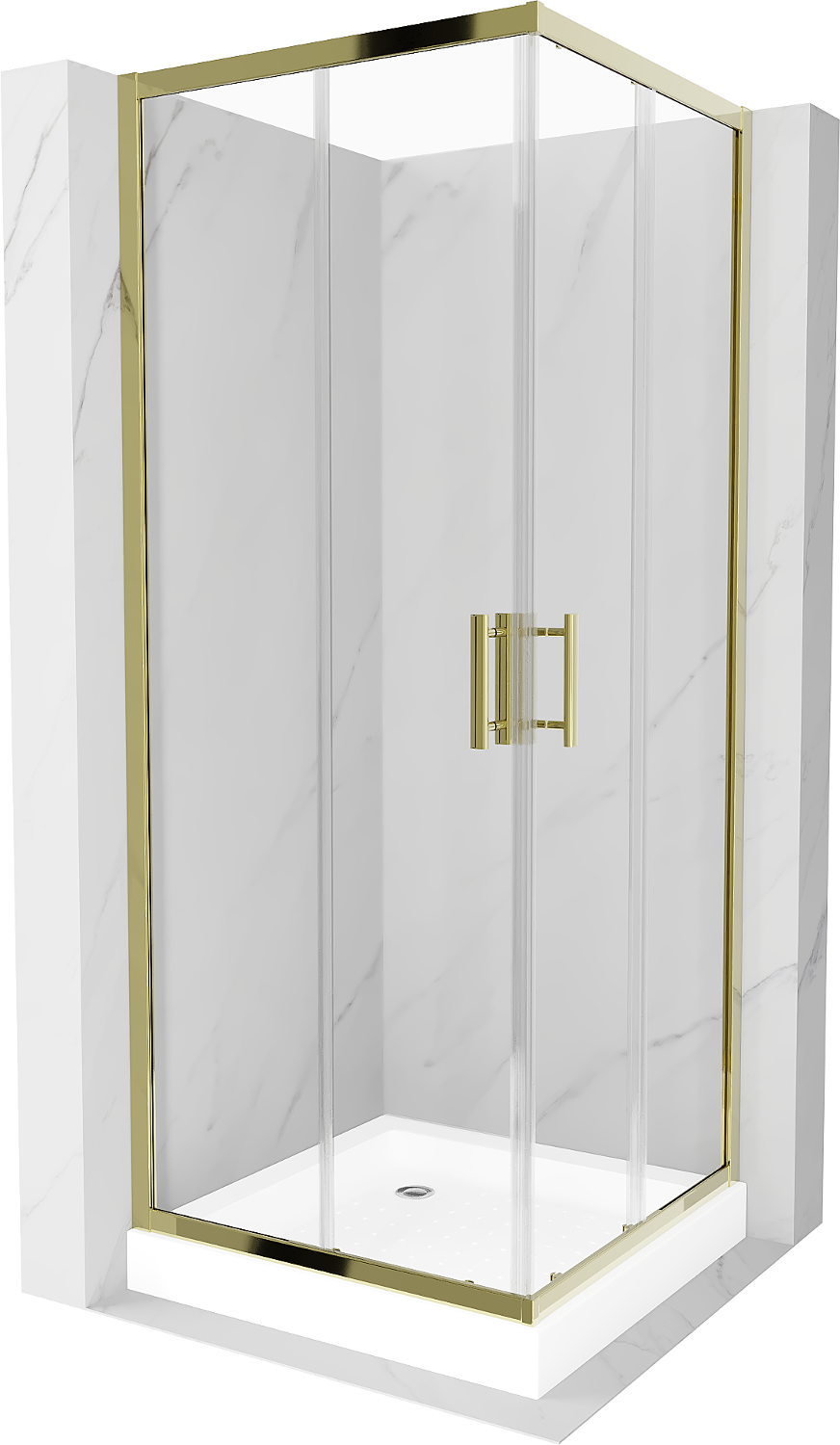 Mexen Rio négyzet alakú zuhanykabin 80 x 80 cm, átlátszó, arany + Rio zuhanytálca, fehér - 860-080-080-50-00-4510