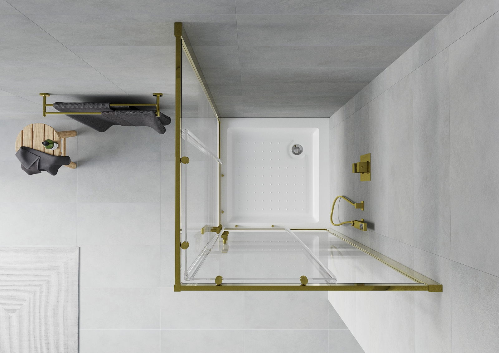 Mexen Rio négyzet alakú zuhanykabin 70 x 70 cm, fehér csíkok, arany + Rio zuhanytálca, fehér - 860-070-070-50-20-4510