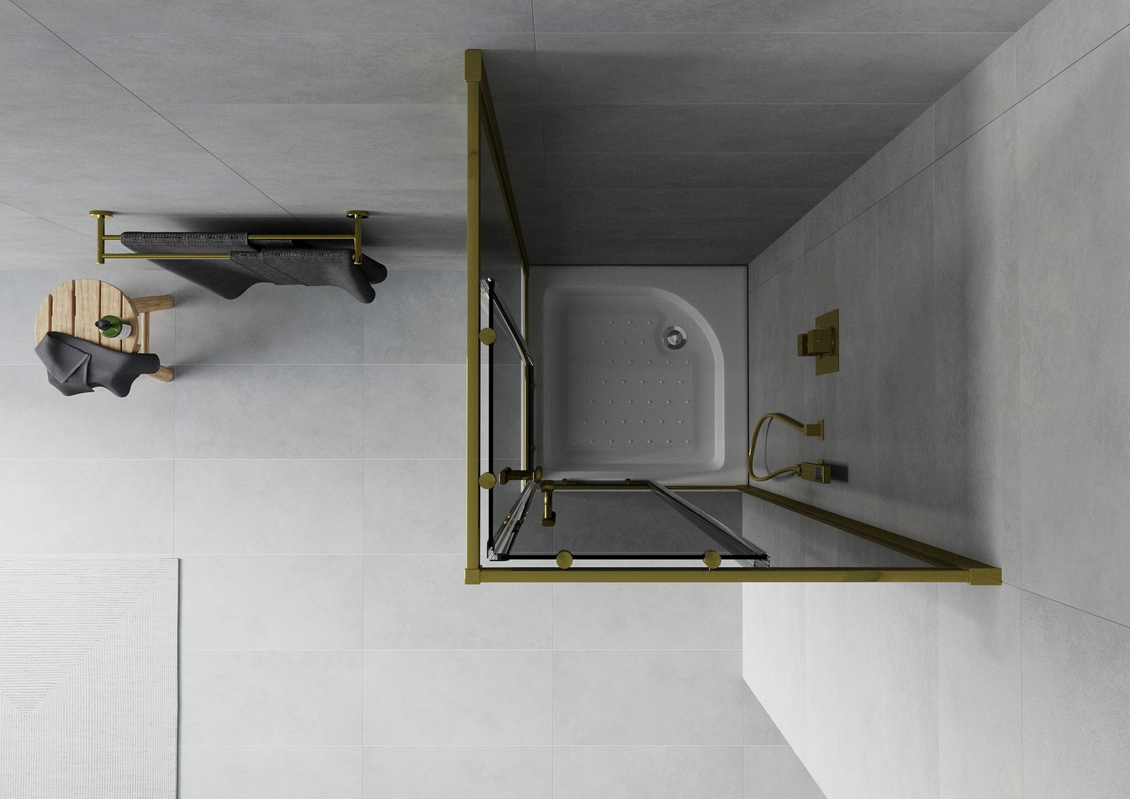 Mexen Rio négyzet alakú zuhanykabin 70 x 70 cm, grafit, arany + Rio tálca, fehér - 860-070-070-50-40-4510