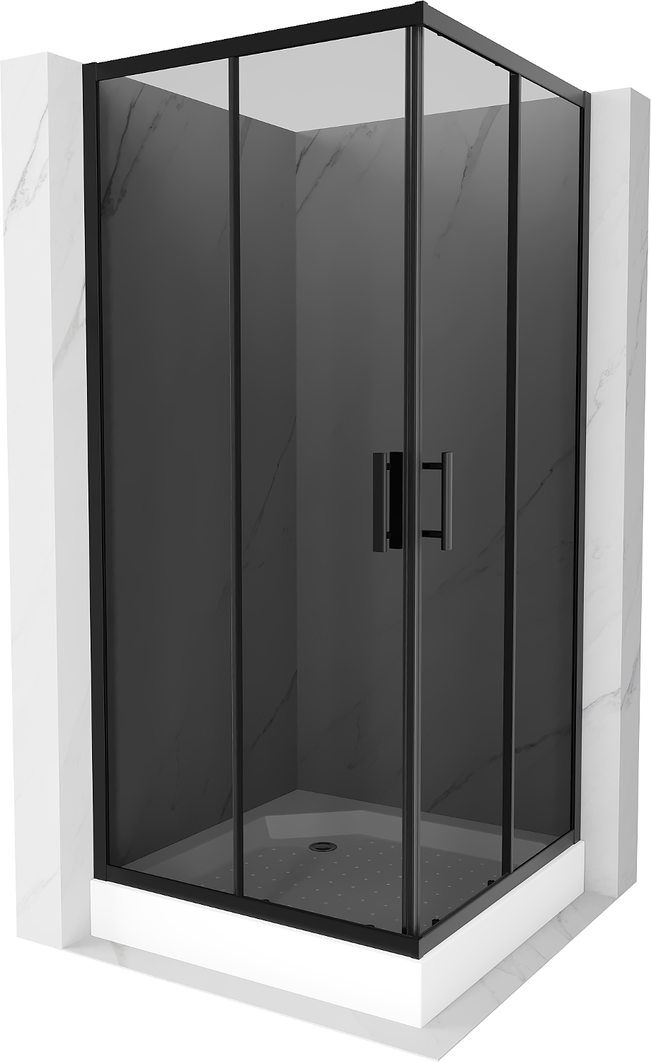 Mexen Rio négyzet alakú zuhanykabin 90 x 90 cm, grafit, fekete + Rio zuhanytálca, fehér - 860-090-090-70-40-4510