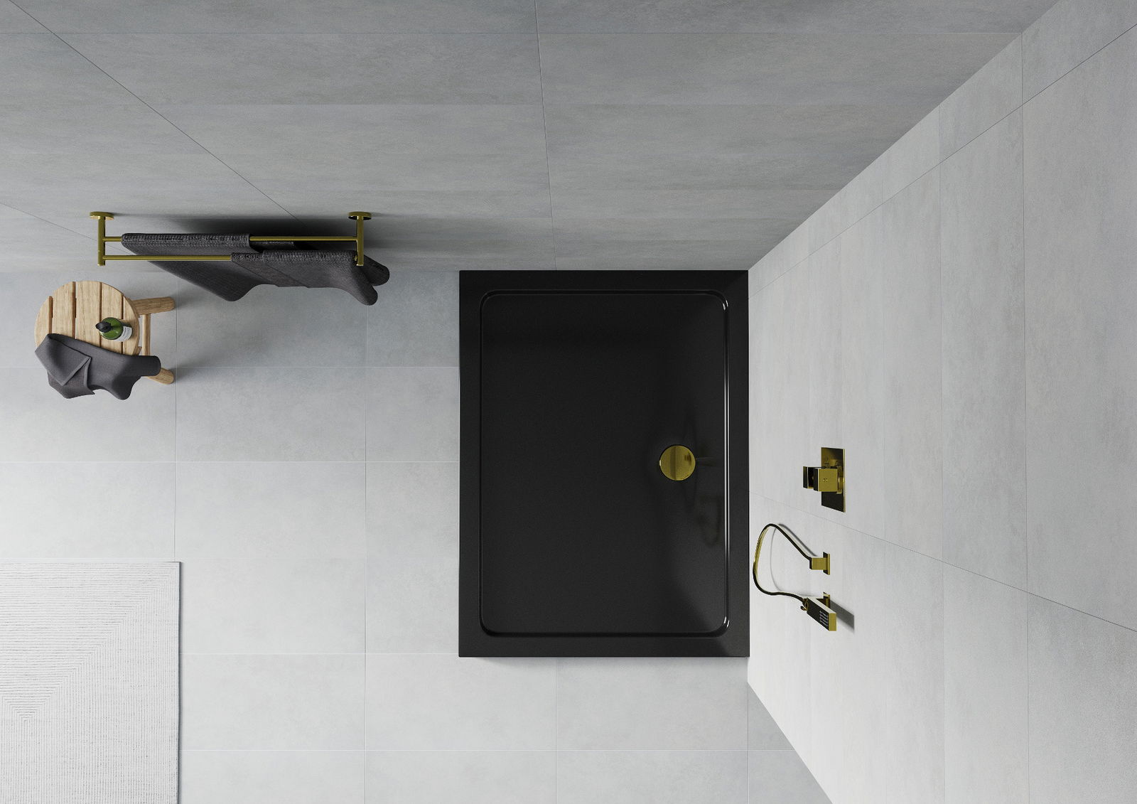 Mexen Flat téglalap alakú slim zuhanytálca 90 x 70 cm, fekete, arany szifon - 40707090G