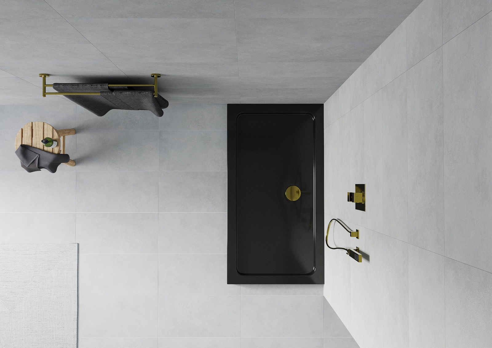 Mexen Flat téglalap alakú, slim zuhanytálca 140 x 70 cm, fekete, arany szifonnal - 40707014G