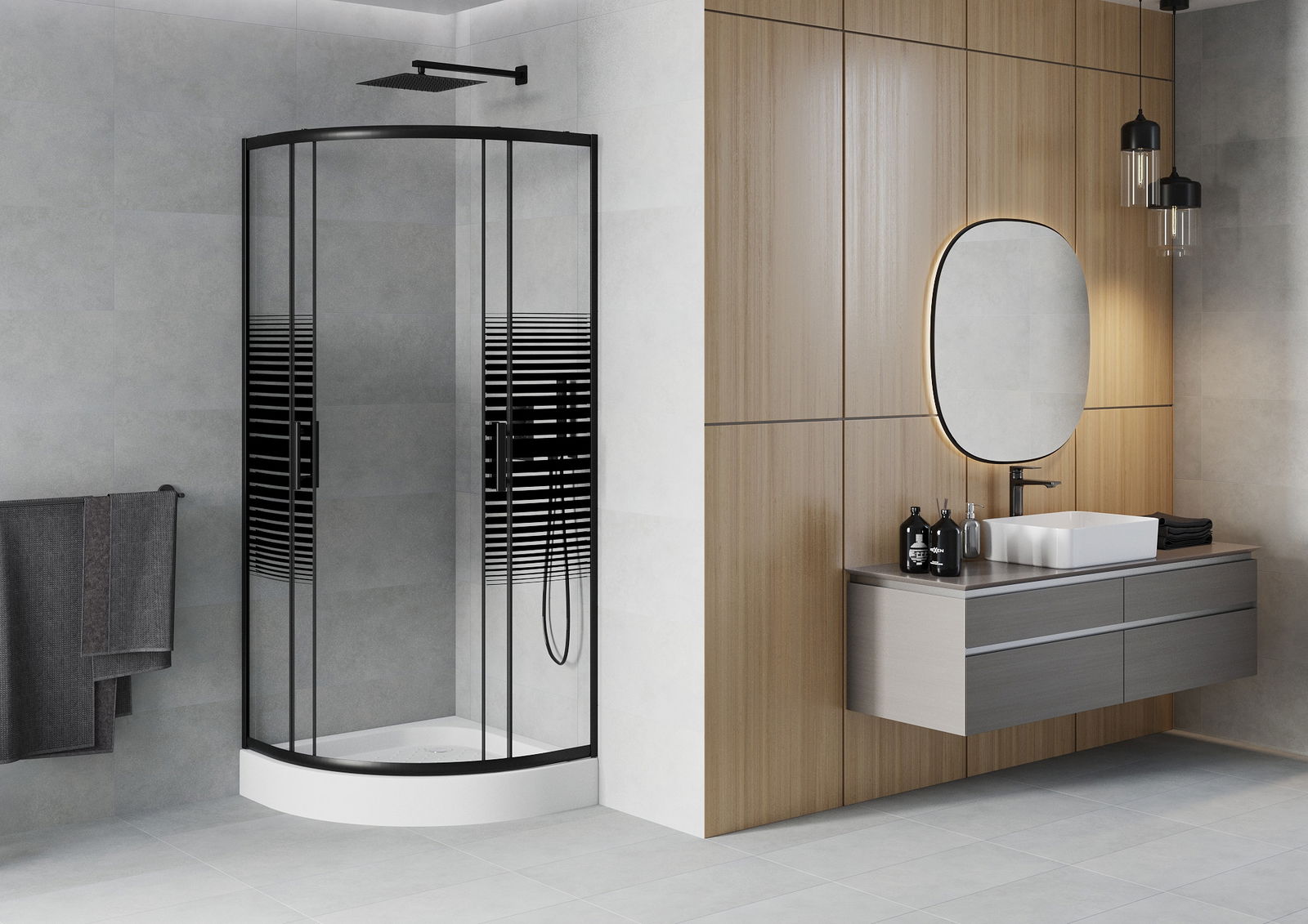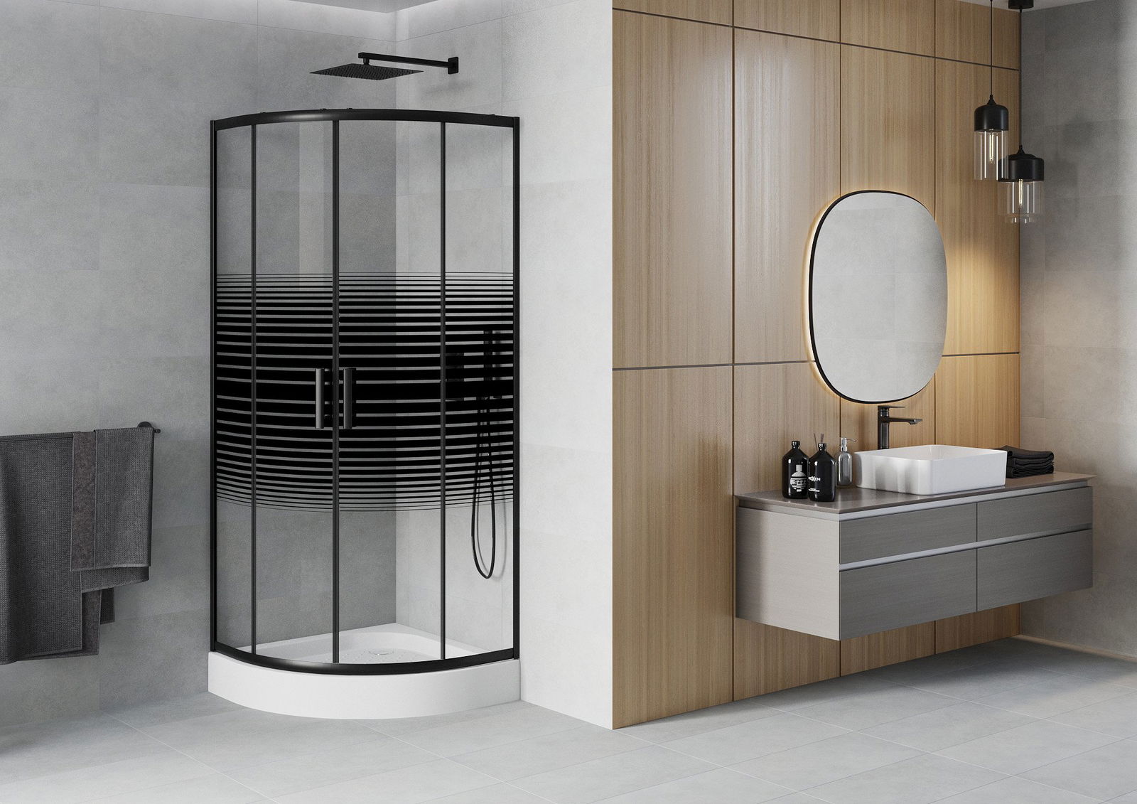 Mexen Rio félköríves zuhanykabin 70 x 70 cm, fekete csíkos, fekete + Rio zuhanytálca, fehér - 863-070-070-70-20-4710