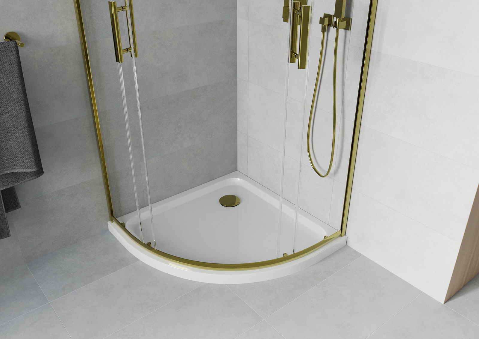 Mexen Rio félkör alakú zuhanykabin 90 x 90 cm, átlátszó, arany + Flat zuhanytálca, fehér - 863-090-090-50-00-4110G