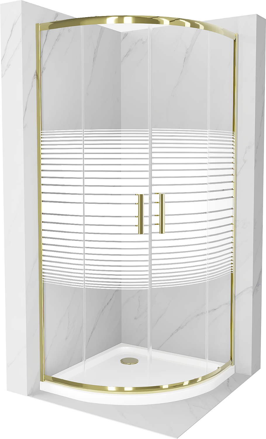 Mexen Rio 80 x 80 cm félkör alakú zuhanykabin, fehér csíkok, arany + Flat zuhanytálca, fehér - 863-080-080-50-20-4110G