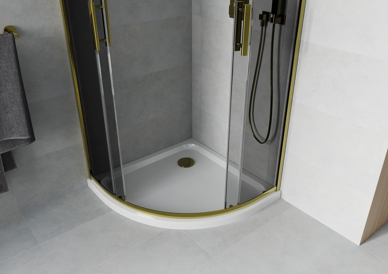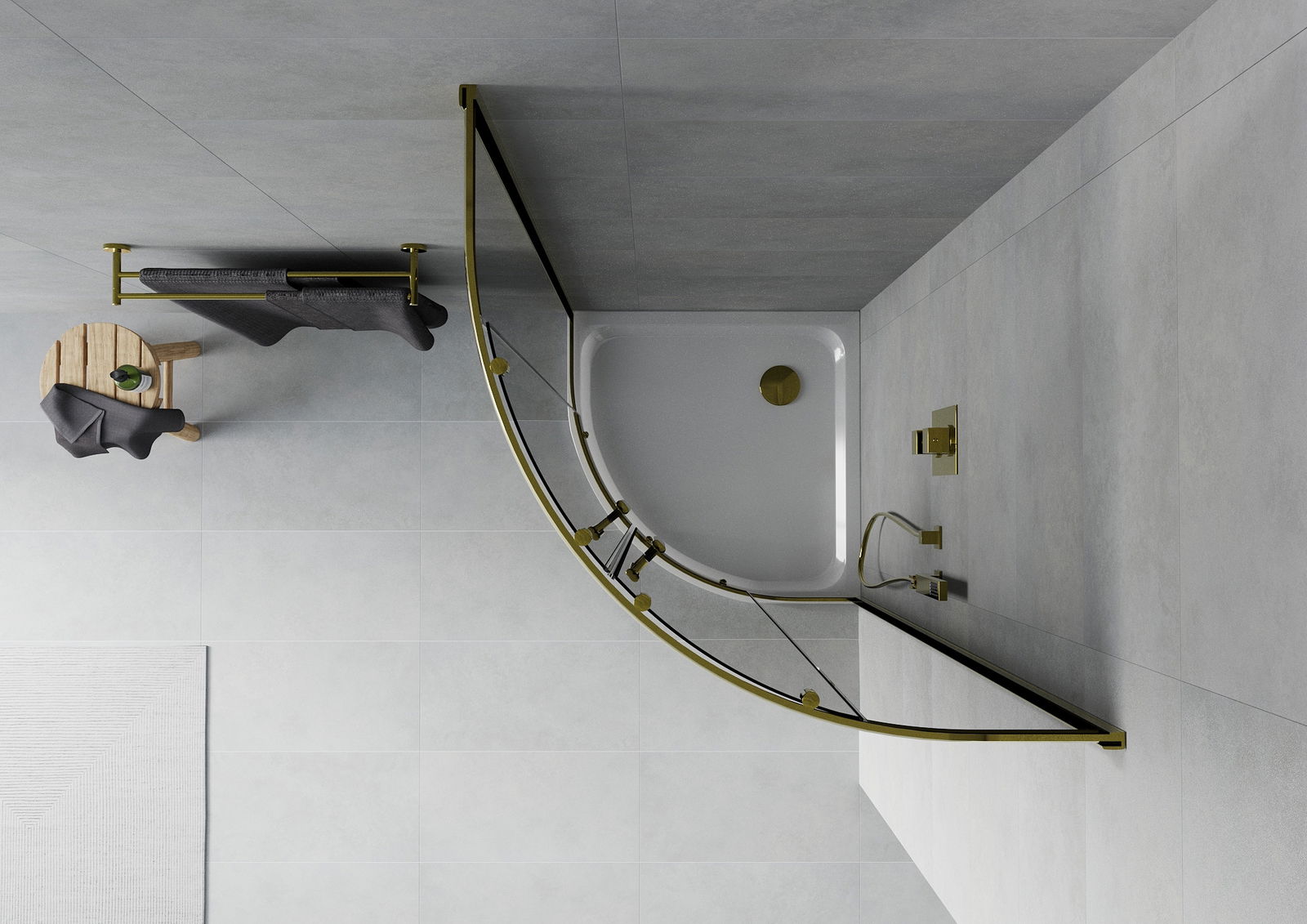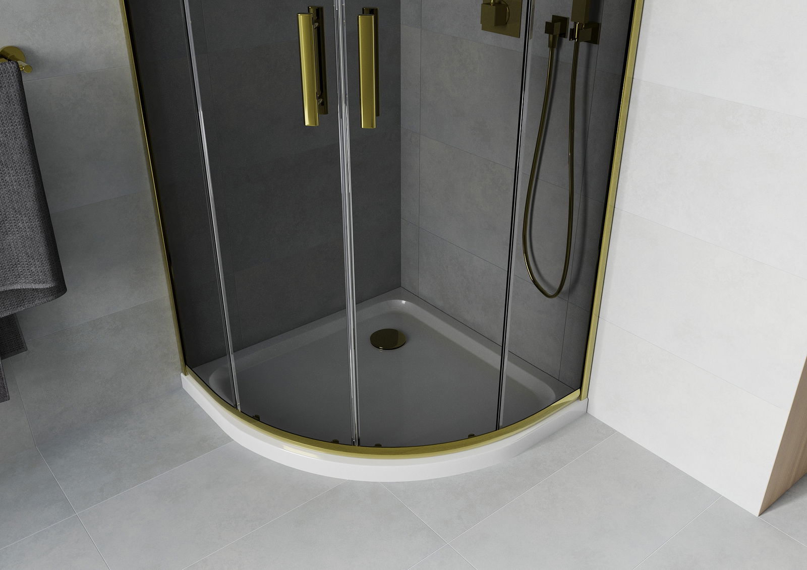 Mexen Rio félkör alakú zuhanykabin 90 x 90 cm, grafit, arany + Flat zuhanytálca, fehér - 863-090-090-50-40-4110G