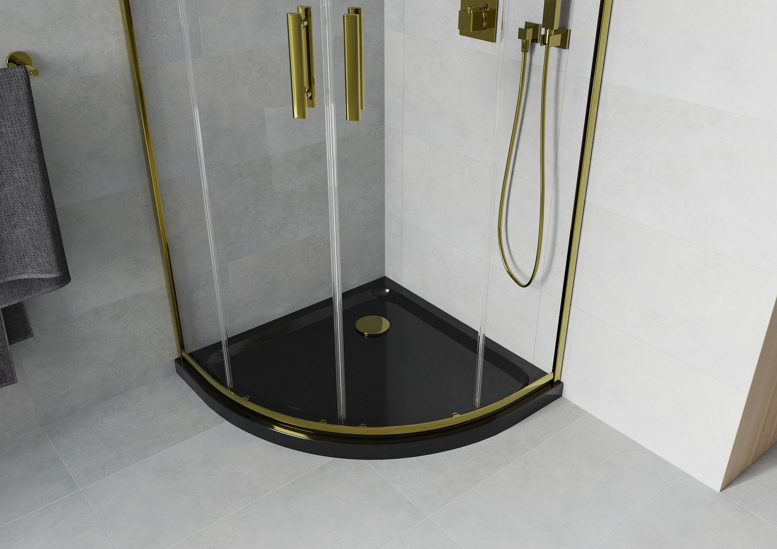 A praktikus és kényelmes fogantyú tartós és ellenálló fémből készült. A divatos forma és a profilok színéhez igazított bevonat modern és stílusos megjelenést ad, hangsúlyozva minden fürdőszoba esztétikáját.
