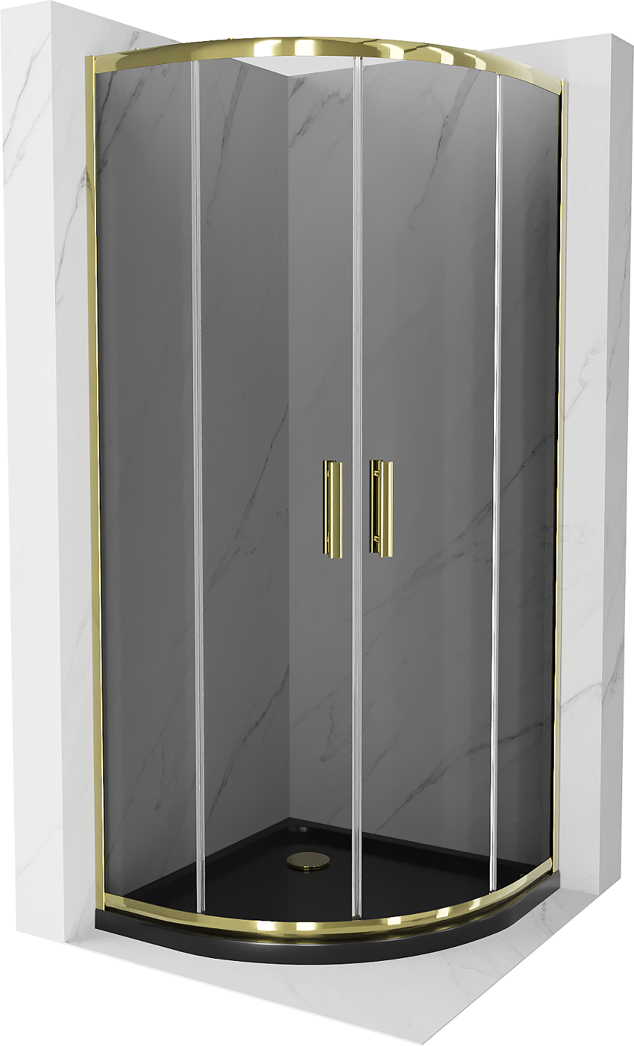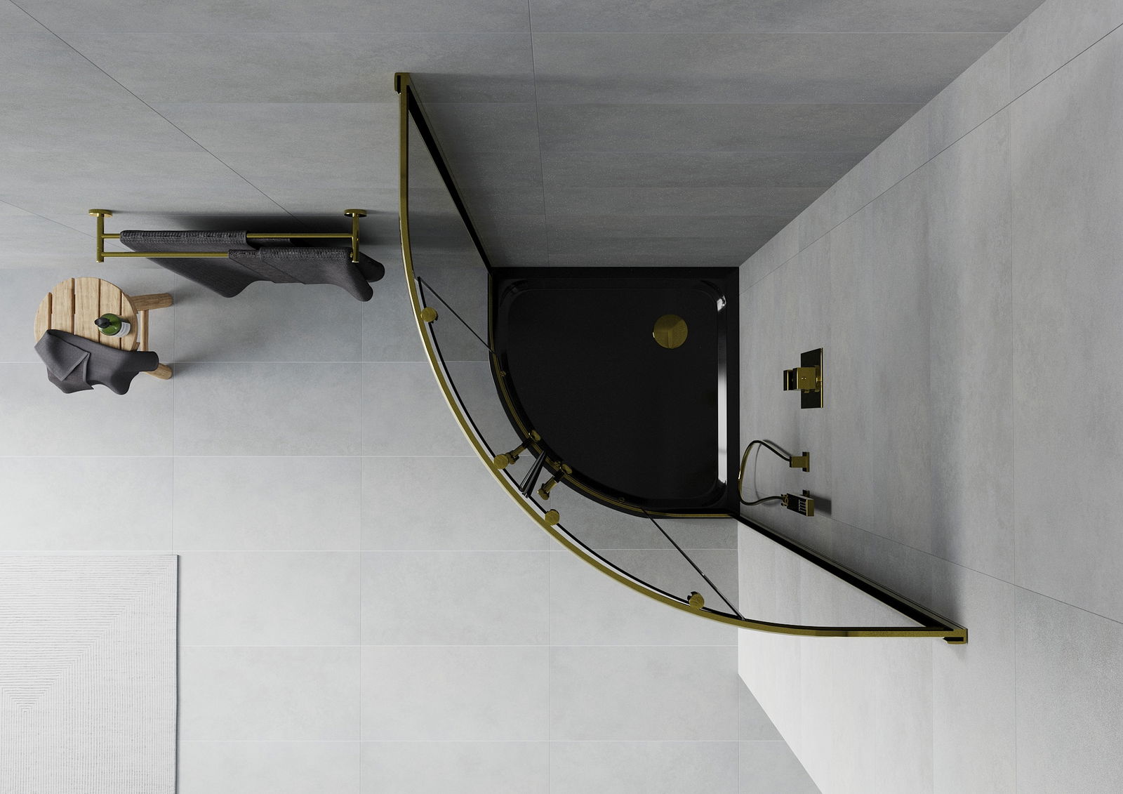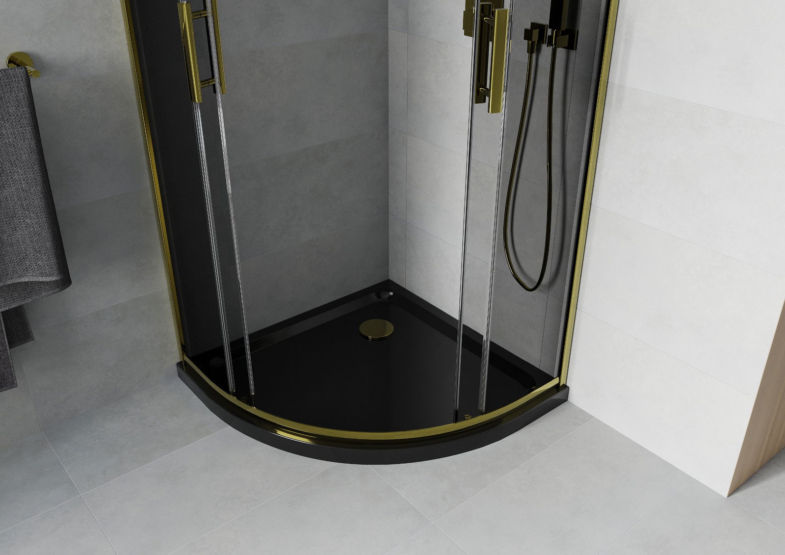Mexen Rio félkör alakú zuhanykabin 80 x 80 cm, grafit, arany + Flat zuhanytálca, fekete - 863-080-080-50-40-4170G