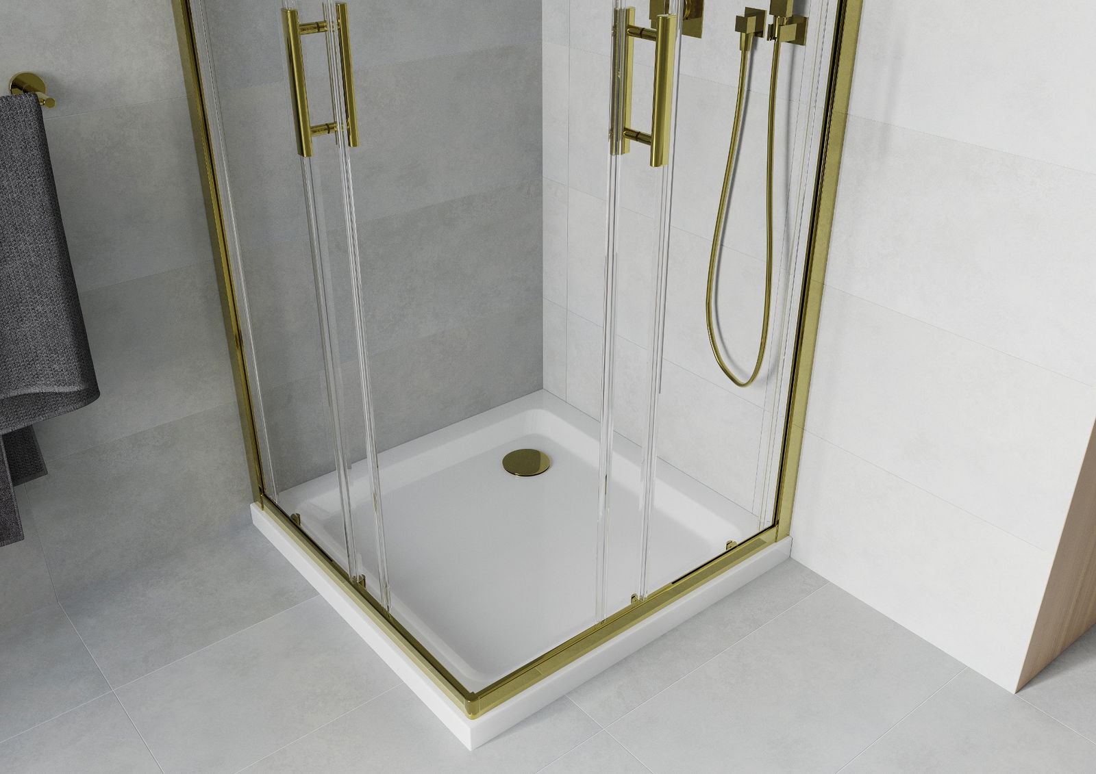 Mexen Rio négyzet alakú zuhanykabin 70 x 70 cm, átlátszó, arany + Flat zuhanytálca, fehér - 860-070-070-50-00-4010G