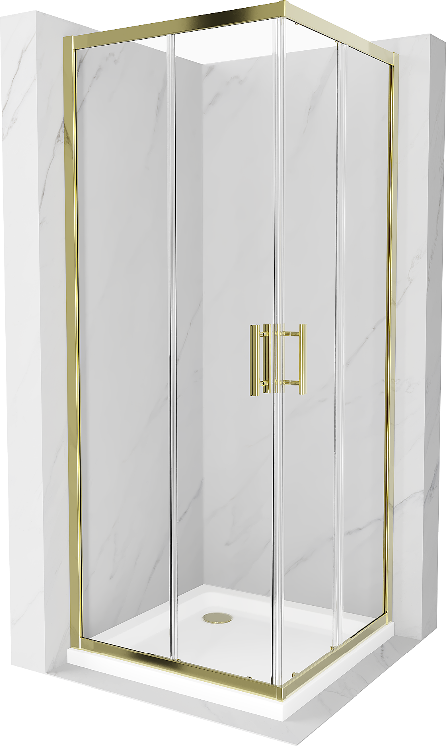 Mexen Rio négyzet alakú zuhanykabin 80 x 80 cm, átlátszó, arany + Flat zuhanytálca, fehér - 860-080-080-50-00-4010G