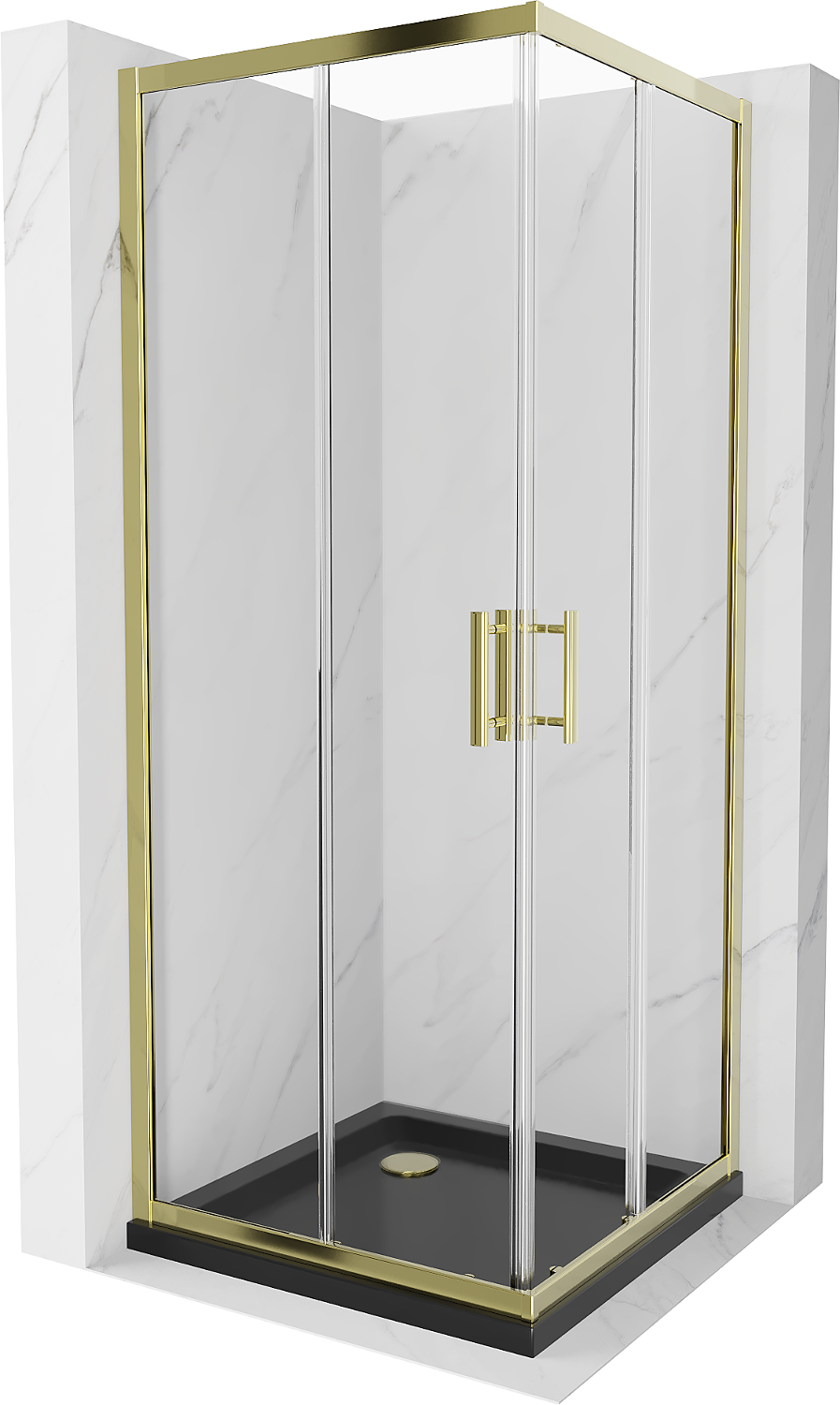 Mexen Rio négyzet alakú zuhanykabin 90 x 90 cm, átlátszó, arany + Flat zuhanytálca, fekete - 860-090-090-50-00-4070G