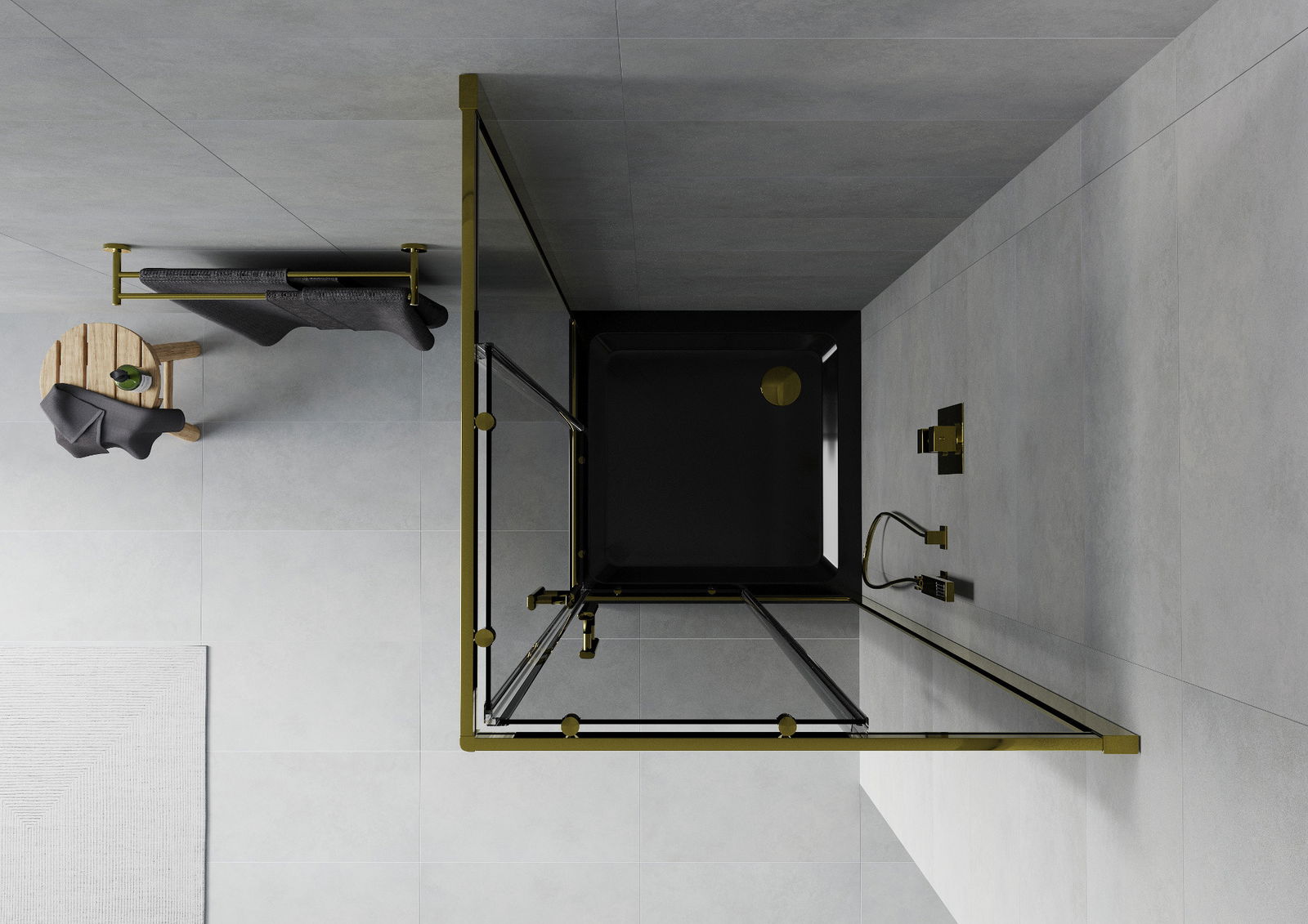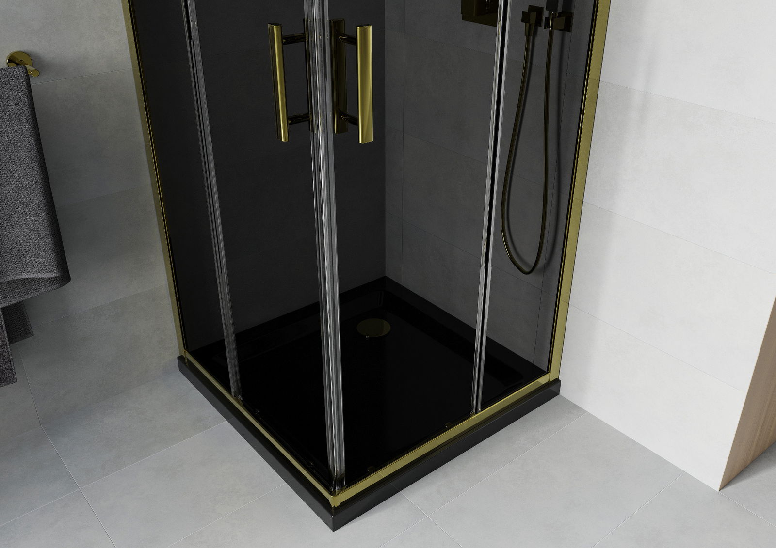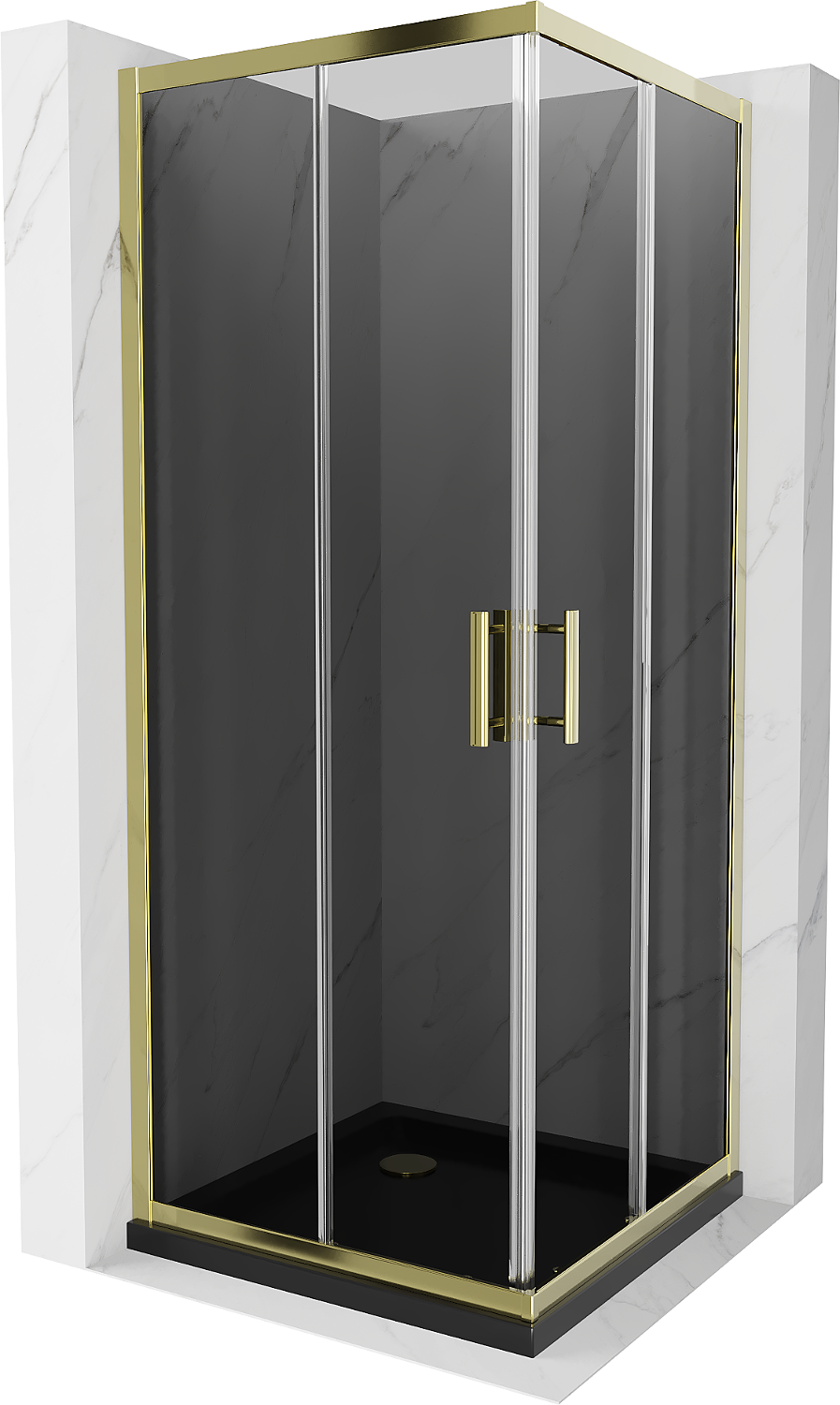 Mexen Rio négyzet alakú zuhanykabin 90 x 90 cm, grafit, arany + Flat zuhanytálca, fekete- 860-090-090-50-40-4070G