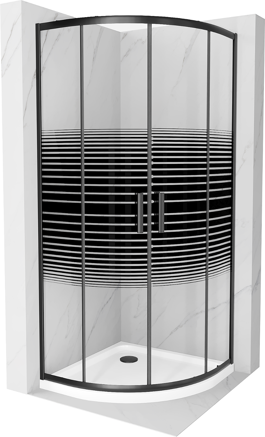 Mexen Rio félköríves zuhanykabin 90 x 90 cm, fekete sávok, fekete + Flat zuhanytálca, fehér - 863-090-090-70-20-4110B