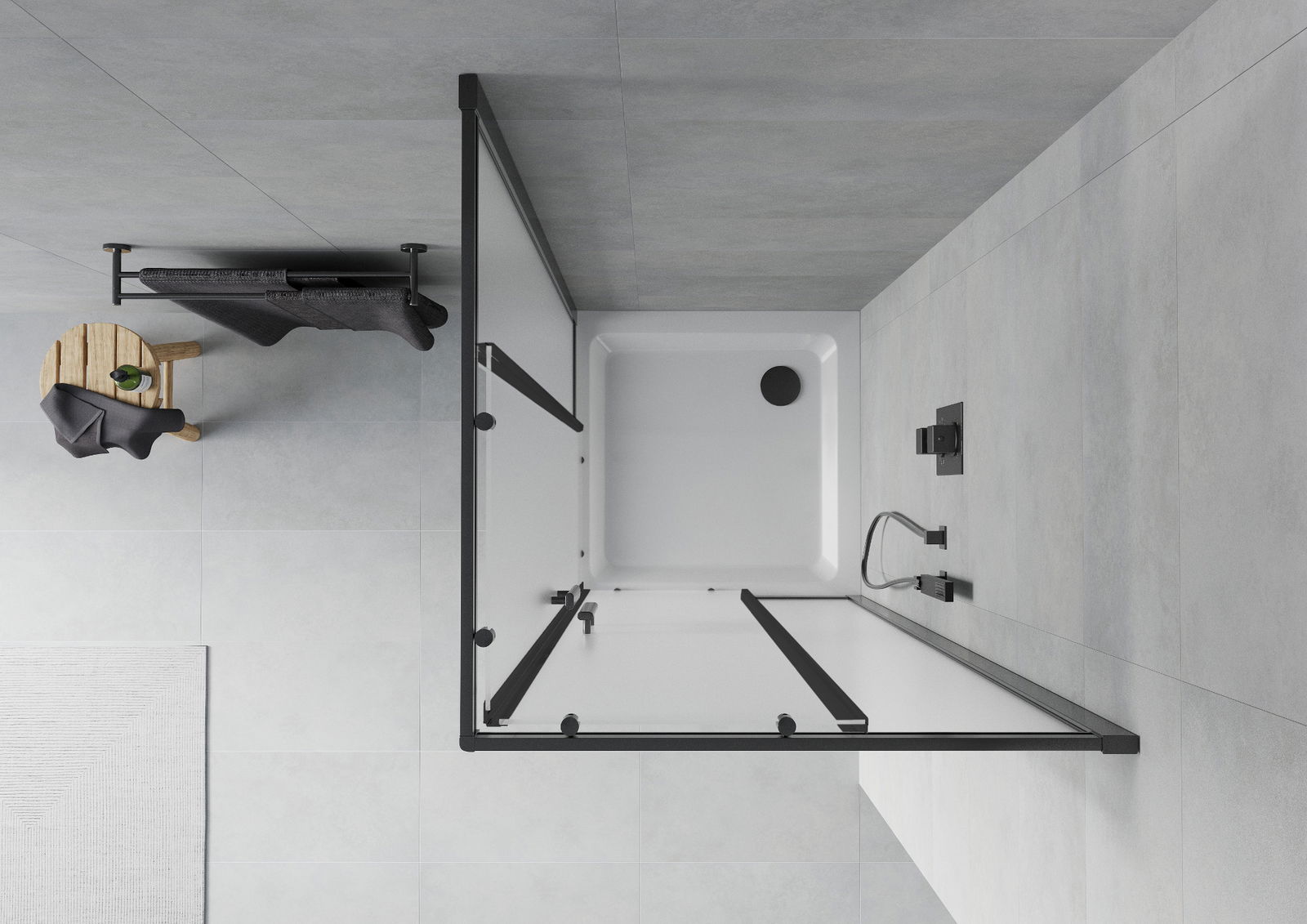 A praktikus és kényelmes fogantyú tartós és ellenálló fémből készült. A divatos forma és a profilok színéhez igazított bevonat modern és stílusos megjelenést ad, hangsúlyozva minden fürdőszoba esztétikáját.