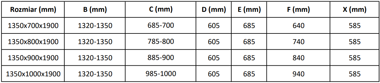 Méret: 135x90 cm (ajtó 135 cm, fal 90 cm)