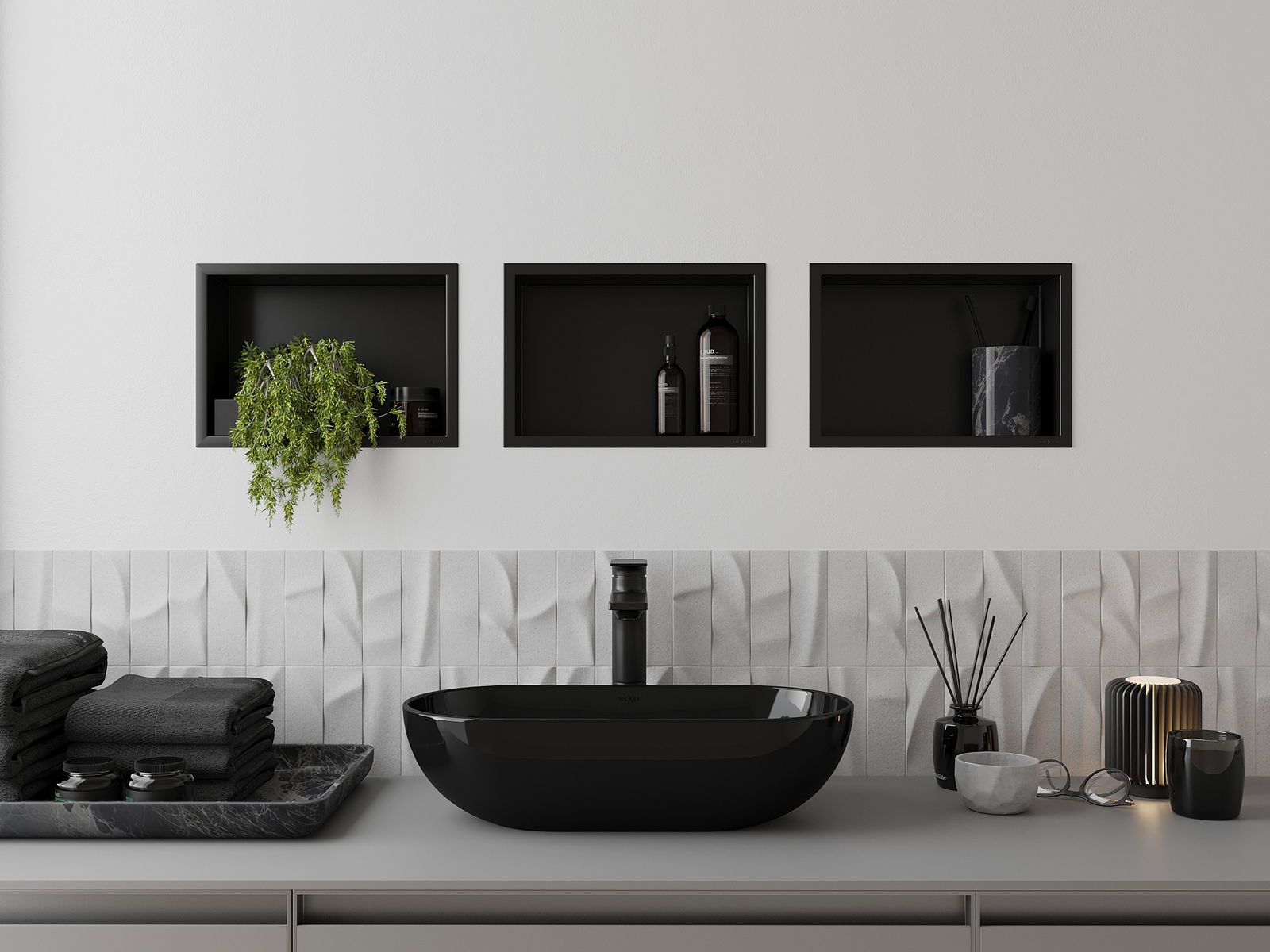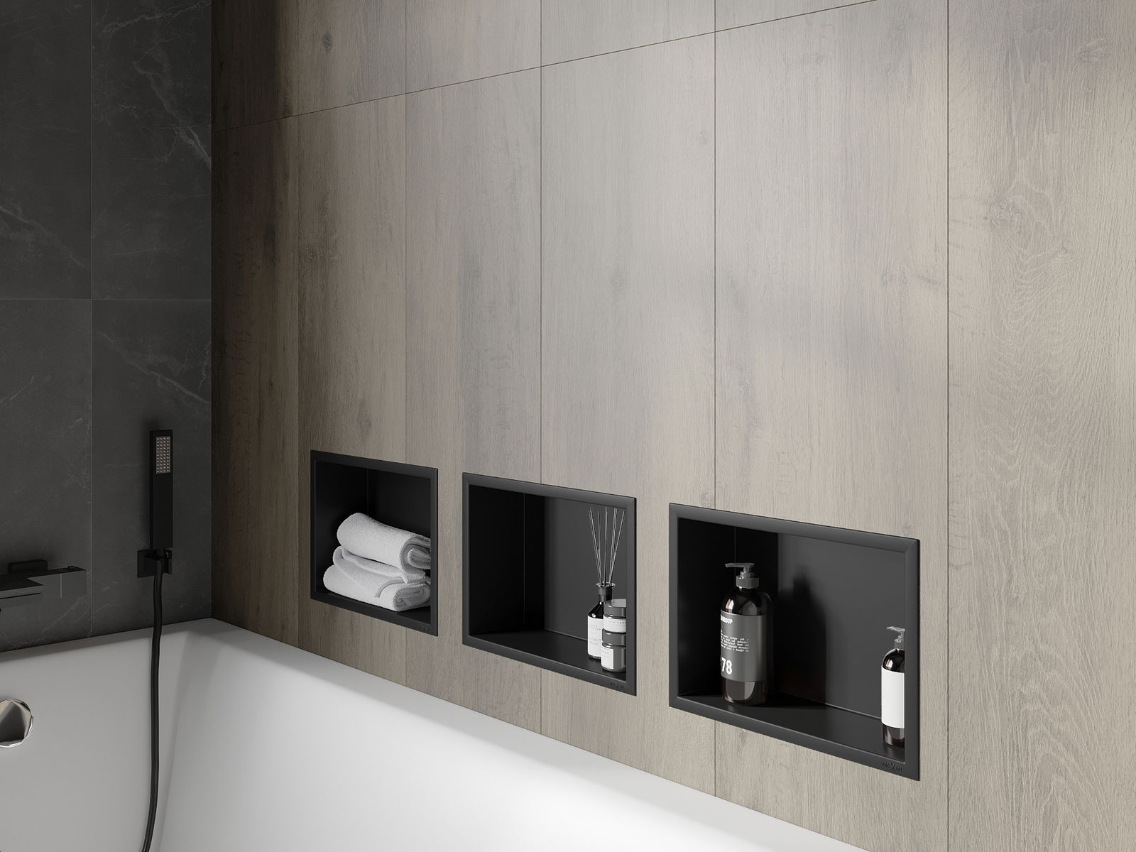 Mexen X-Wall-R süllyesztett polc peremmel 30 x 20 cm, fekete - 1970302010