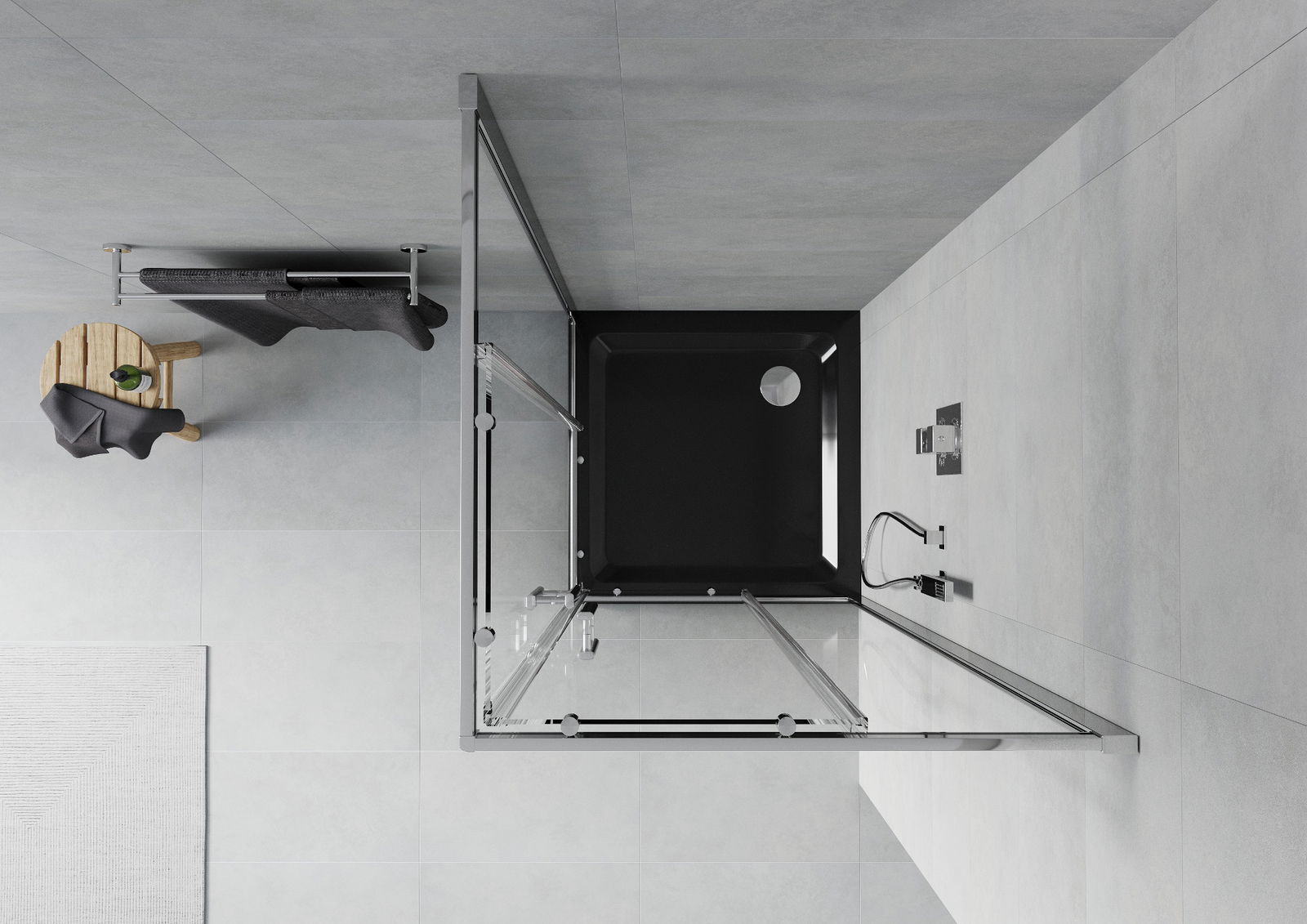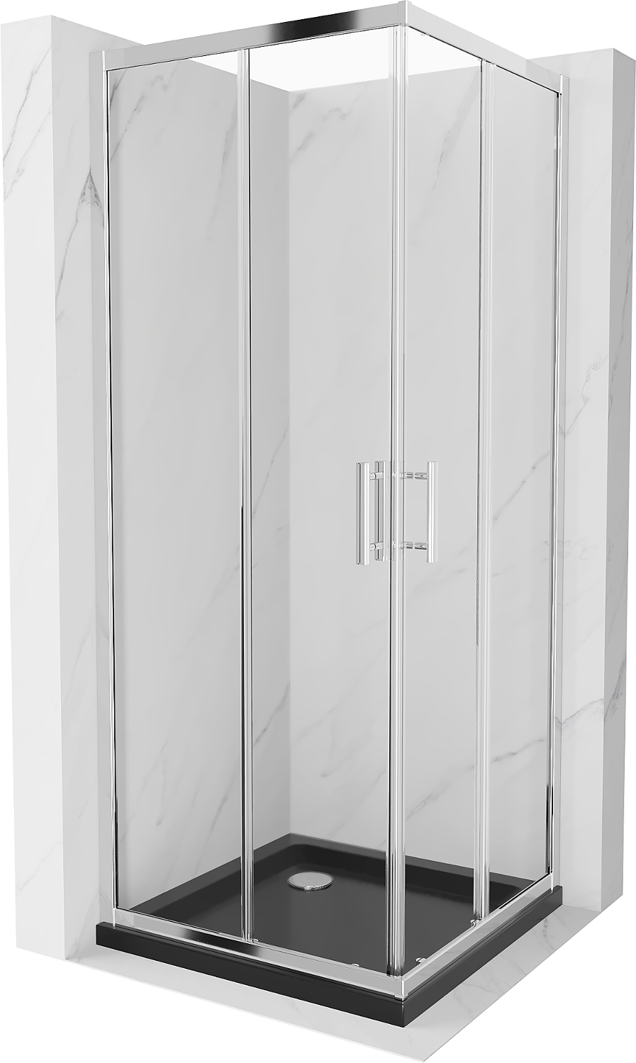Mexen Rio négyzet alakú zuhanykabin 70 x 70 cm, átlátszó, króm + Flat tálca, fekete - 860-070-070-01-00-4070