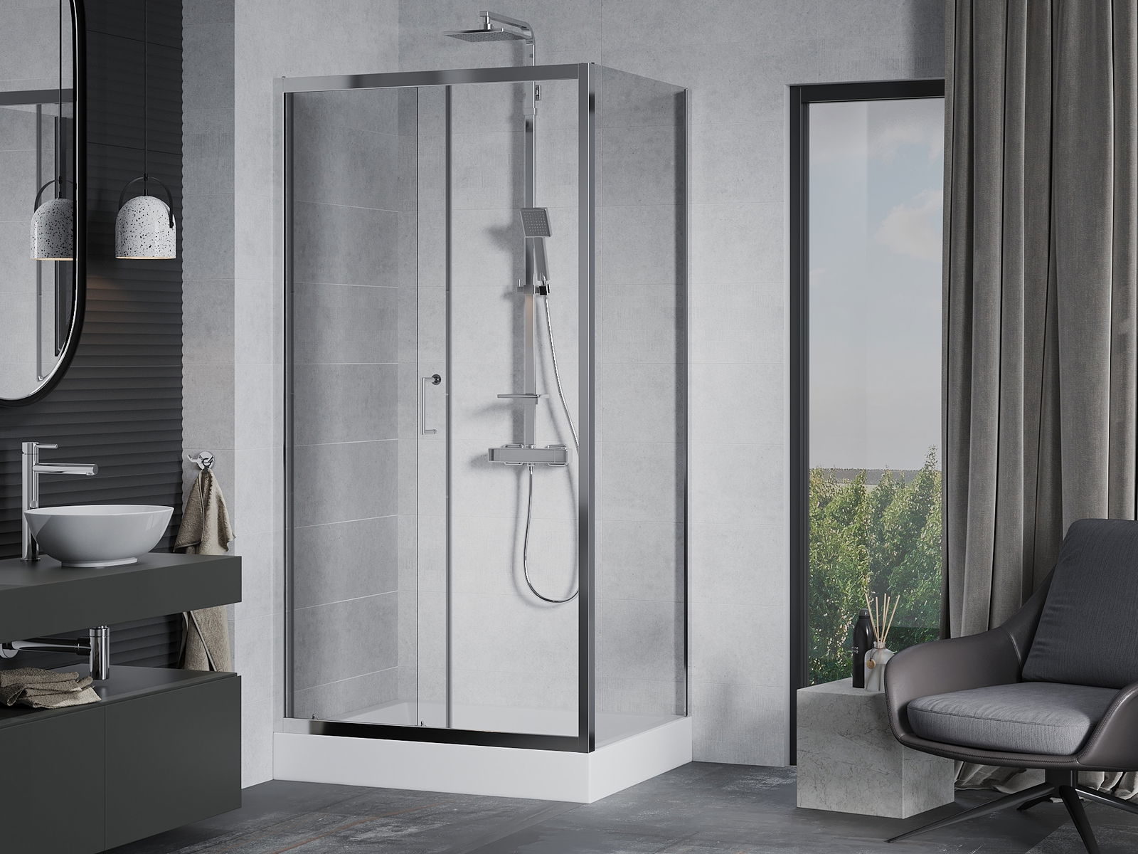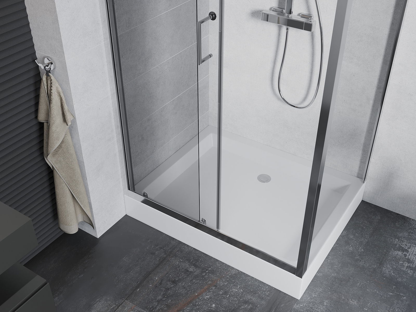A praktikus és kényelmes fogantyú tartós és ellenálló fémből készült. A divatos forma és a profilok színéhez igazított bevonat modern és stílusos megjelenést ad, hangsúlyozva minden fürdőszoba esztétikáját.
