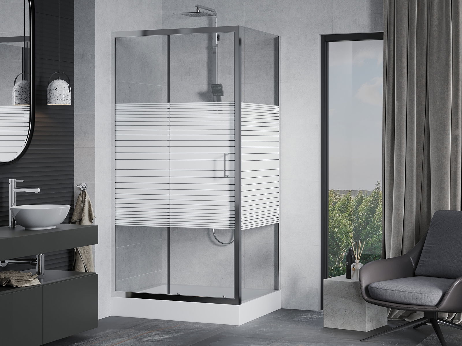 Mexen Apia tolóajtós zuhanykabin 100 x 80 cm, fehér csíkok, króm + Rio zuhanytálca - 840-100-080-01-20-4510