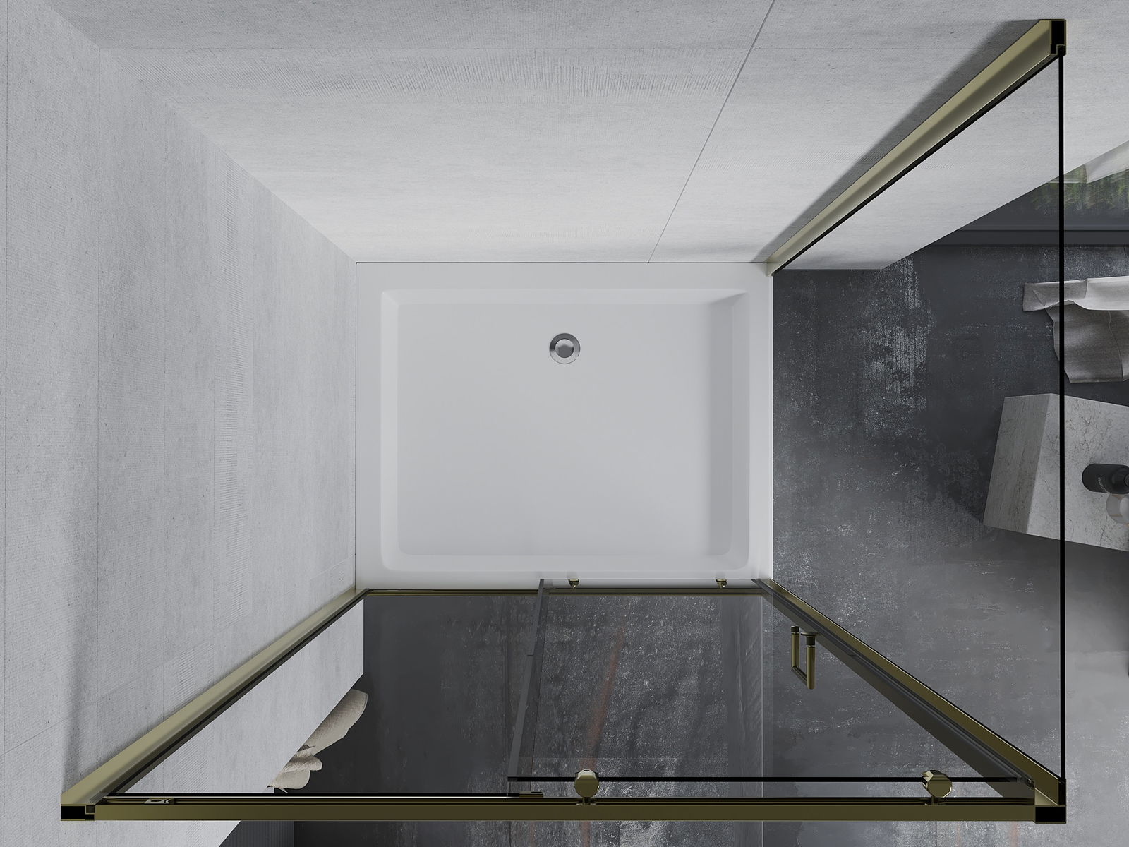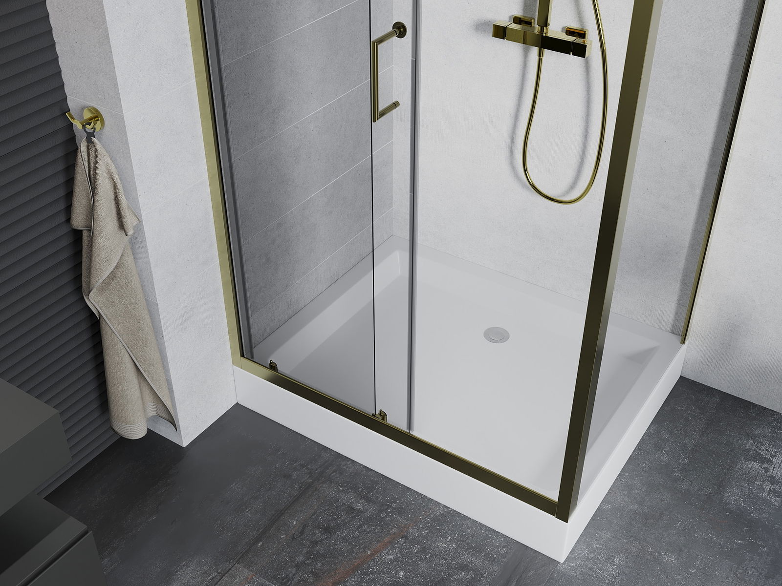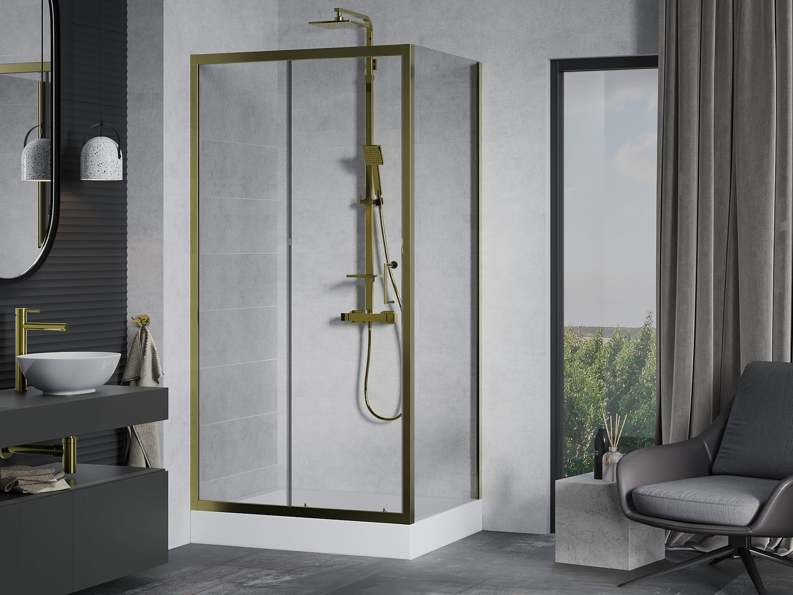 Mexen Apia tolóajtós zuhanykabin 100 x 80 cm, átlátszó, arany + Rio tálca - 840-100-080-50-00-4510
