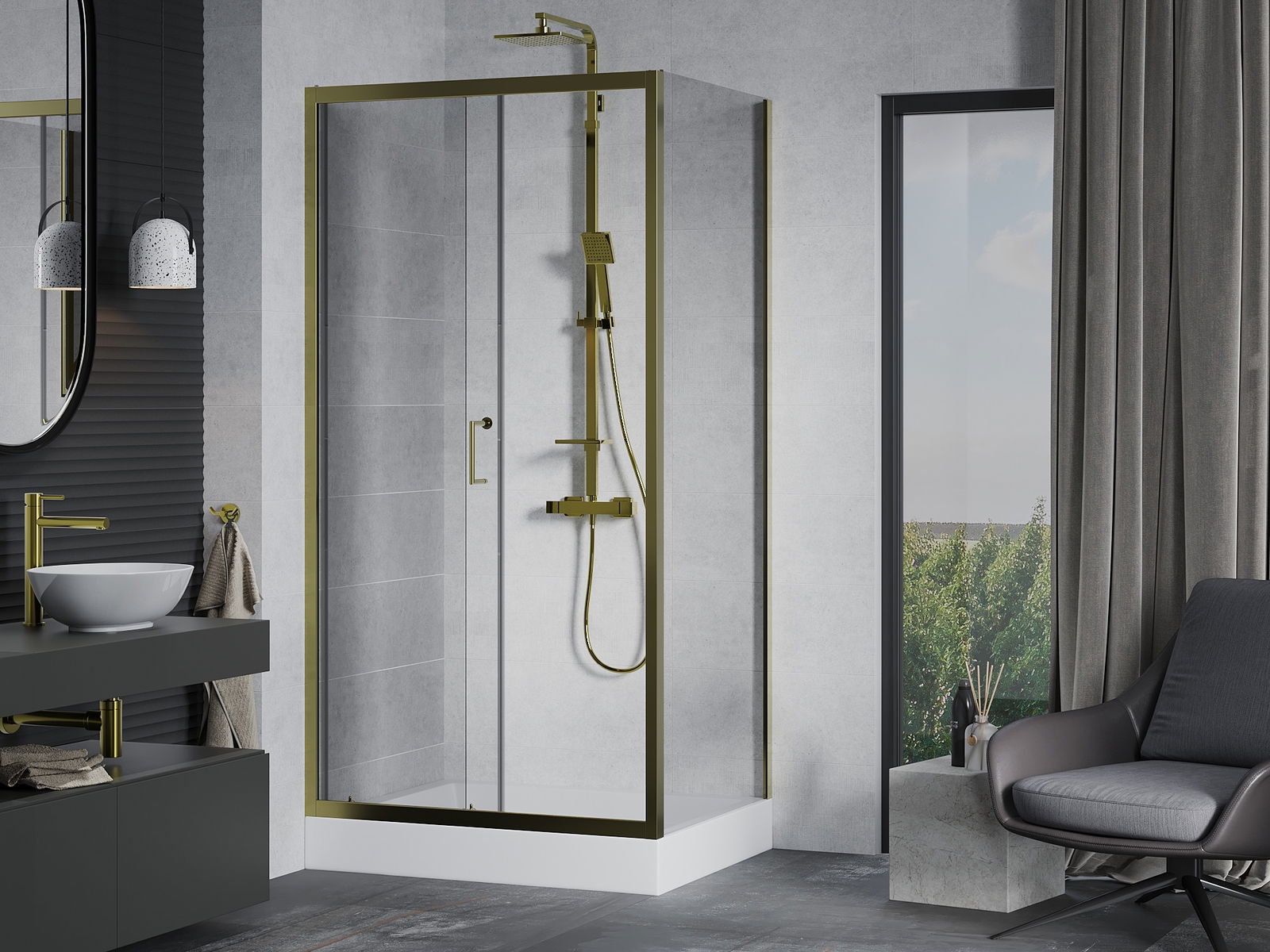 Mexen Apia toló zuhanykabin 120 x 90 cm, átlátszó, arany + Rio zuhanytálca - 840-120-090-50-00-4510