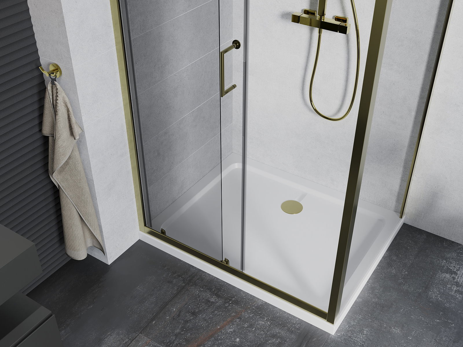 A praktikus és kényelmes fogantyú tartós és ellenálló fémből készült. A divatos forma a profilok színéhez igazított kivitelezéssel együtt modern és stílusos megjelenést kölcsönöz az egésznek, kiemelve minden fürdőszoba esztétikáját.