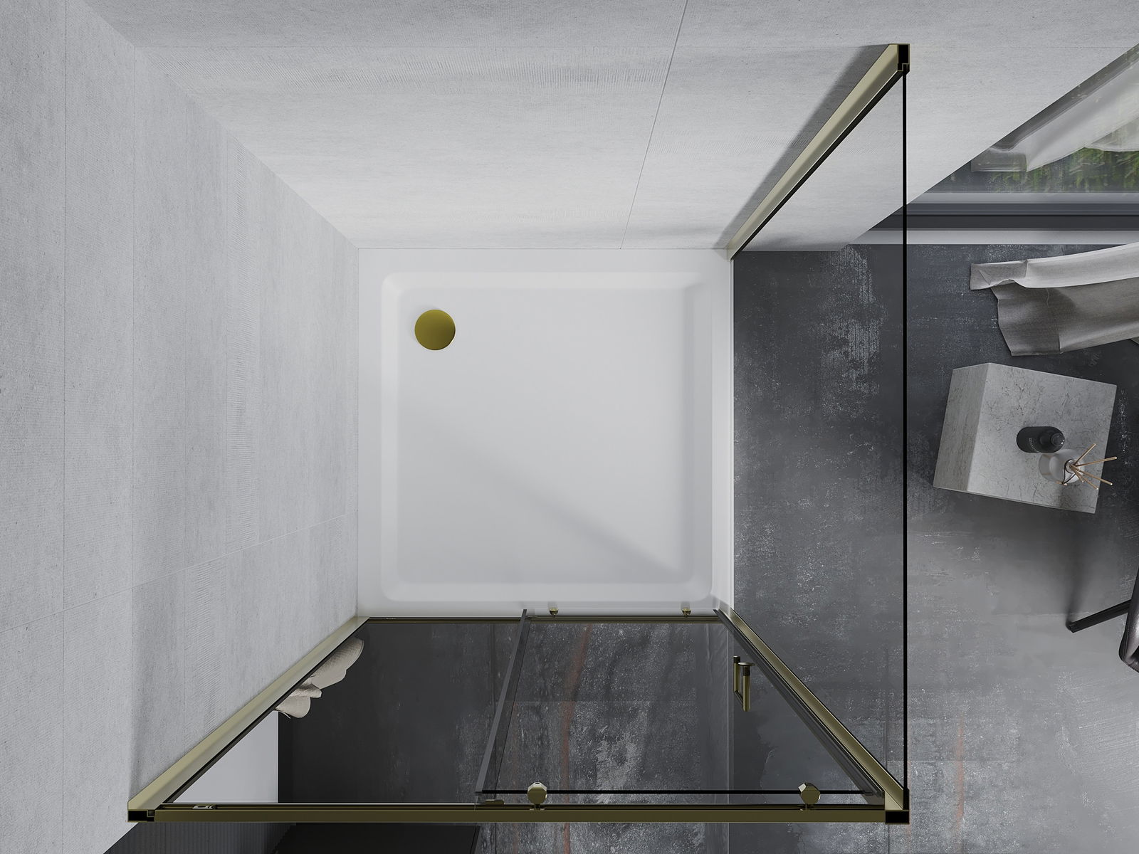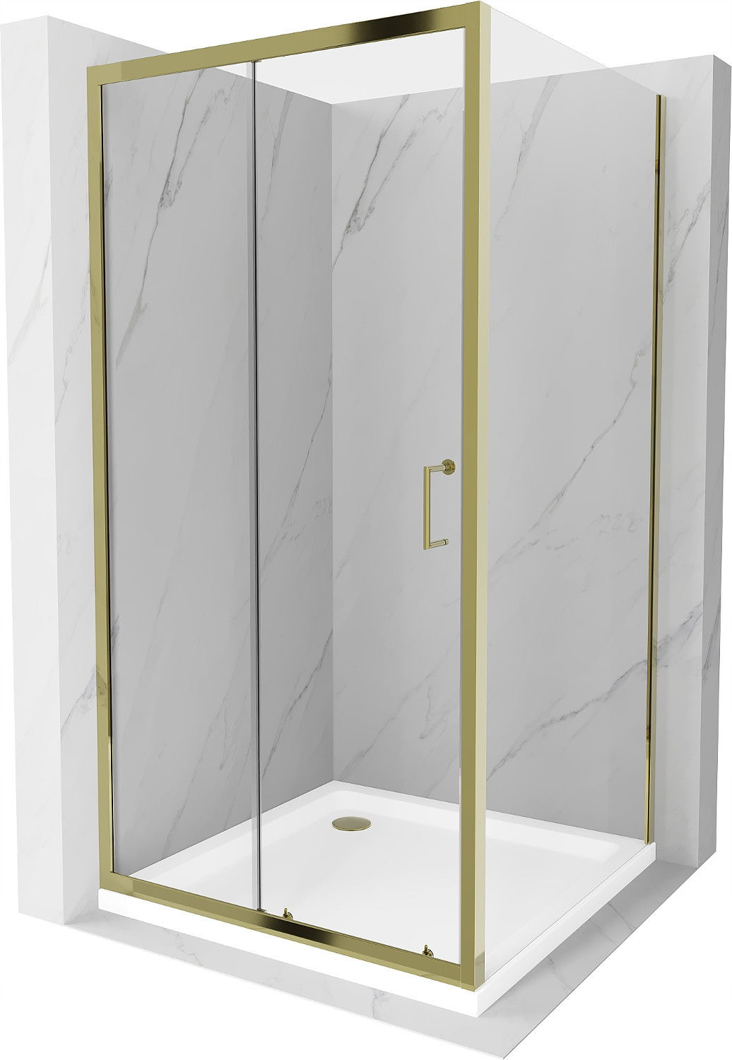 Mexen Apia tolóajtós zuhanykabin 100 x 100 cm, átlátszó, arany + Flat zuhanytálca, fehér- 840-100-100-50-00-4010G