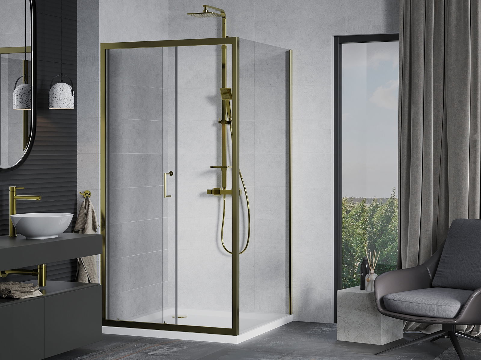 A praktikus és kényelmes fogantyú tartós és ellenálló fémből készült. A divatos forma és a profilok színéhez igazított bevonat modern és stílusos megjelenést ad, hangsúlyozva minden fürdőszoba esztétikáját.