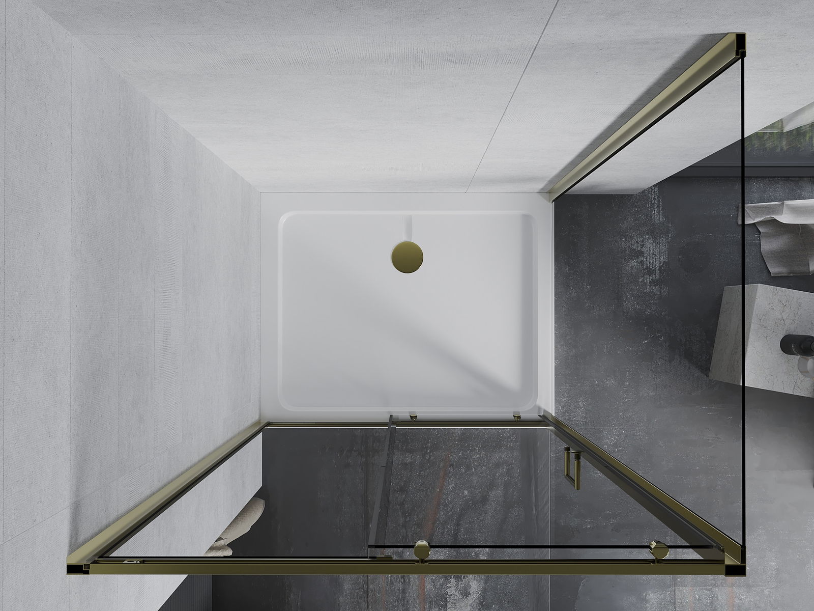 Mexen Apia tolóajtós zuhanykabin 110 x 90 cm, átlátszó, arany + Flat zuhanytálca, fehér- 840-110-090-50-00-4010G