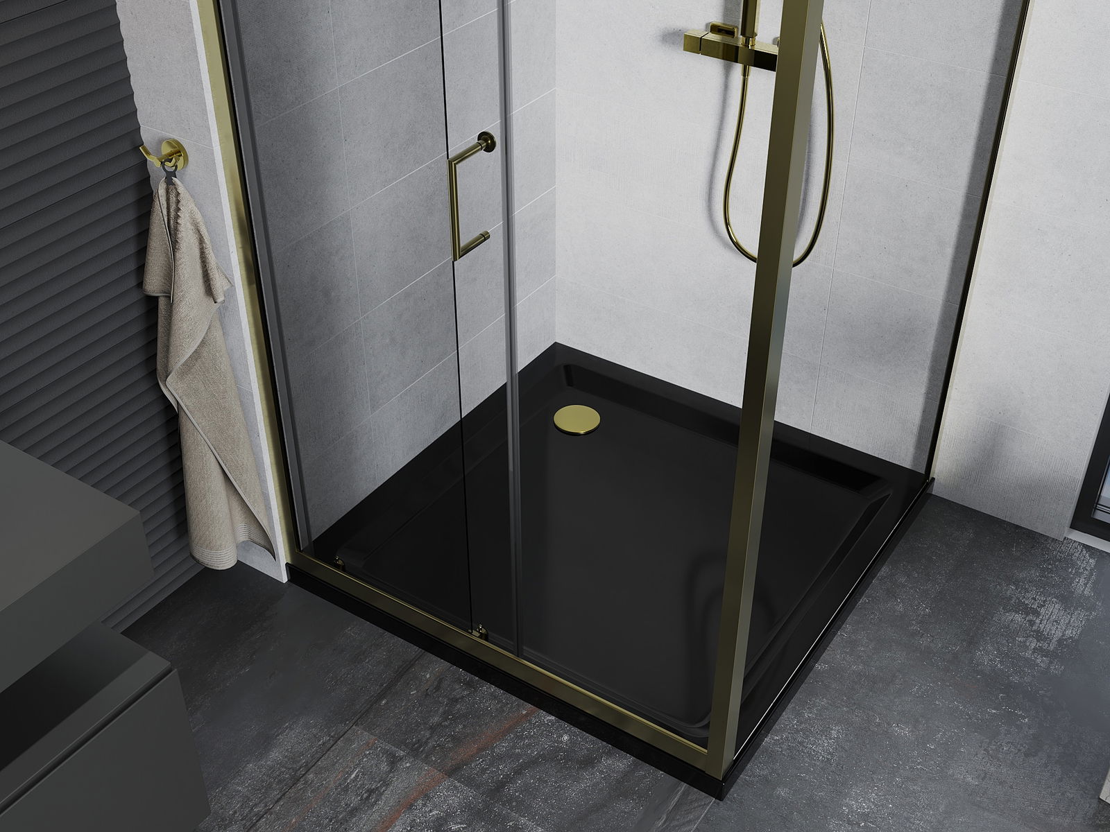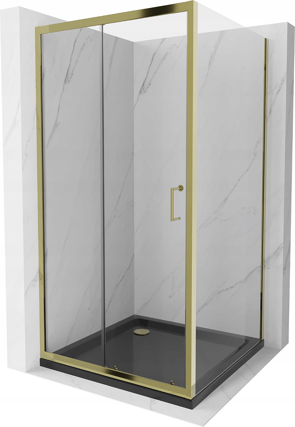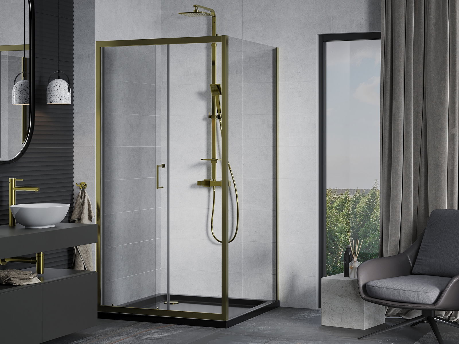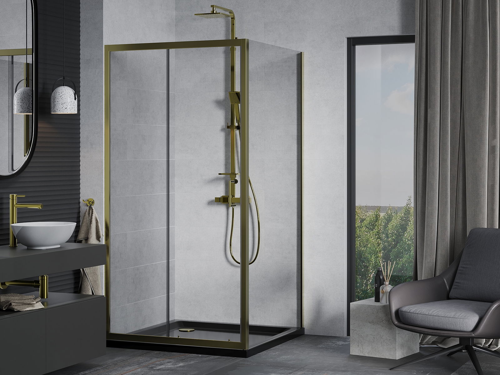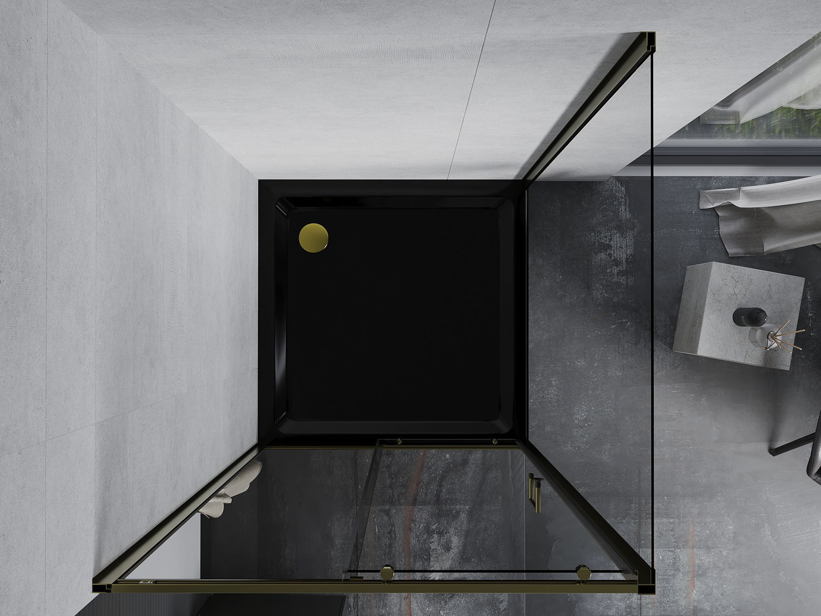 Mexen Apia tolóajtós zuhanykabin 90 x 90 cm, átlátszó, arany + Flat fekete zuhanytálca - 840-090-090-50-00-4070G