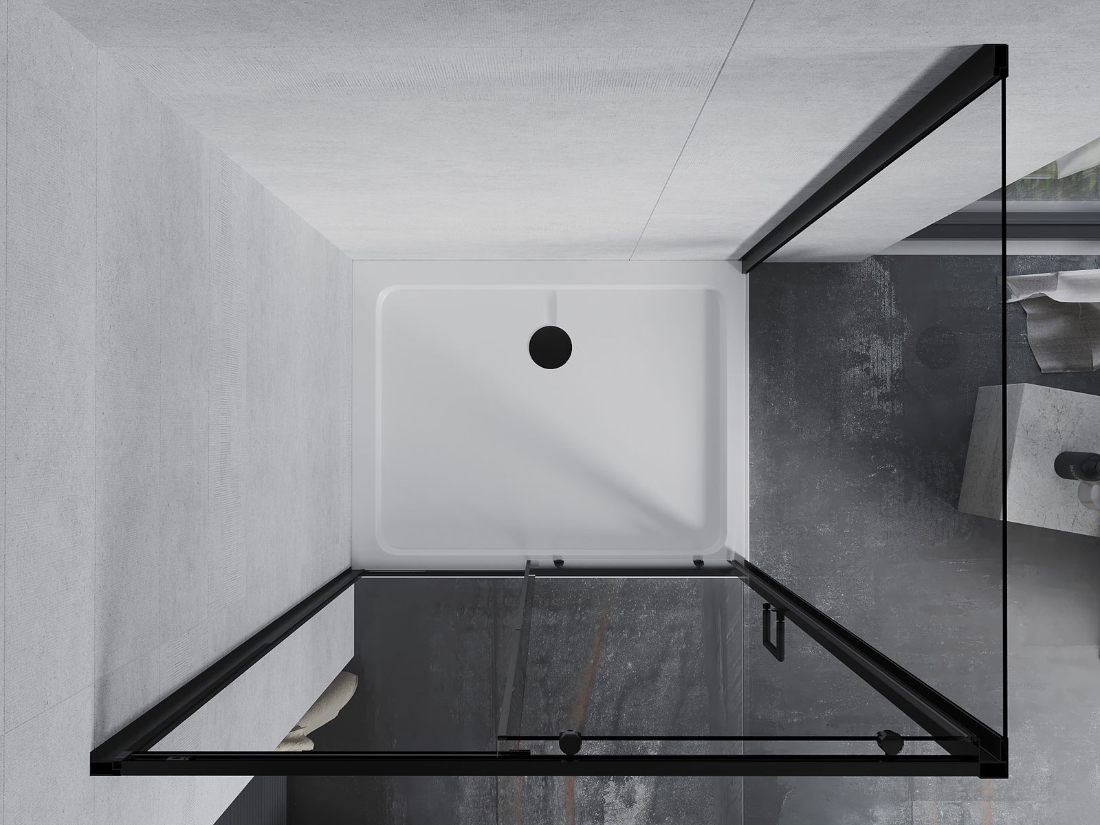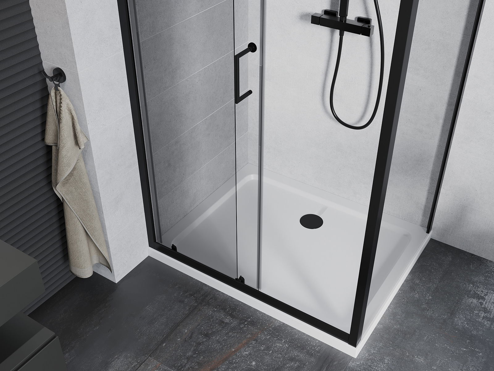 Mexen Apia tolóajtós zuhanykabin 130 x 100 cm, átlátszó, fekete + Flat zuhanytálca, fehér- 840-130-100-70-00-4010B