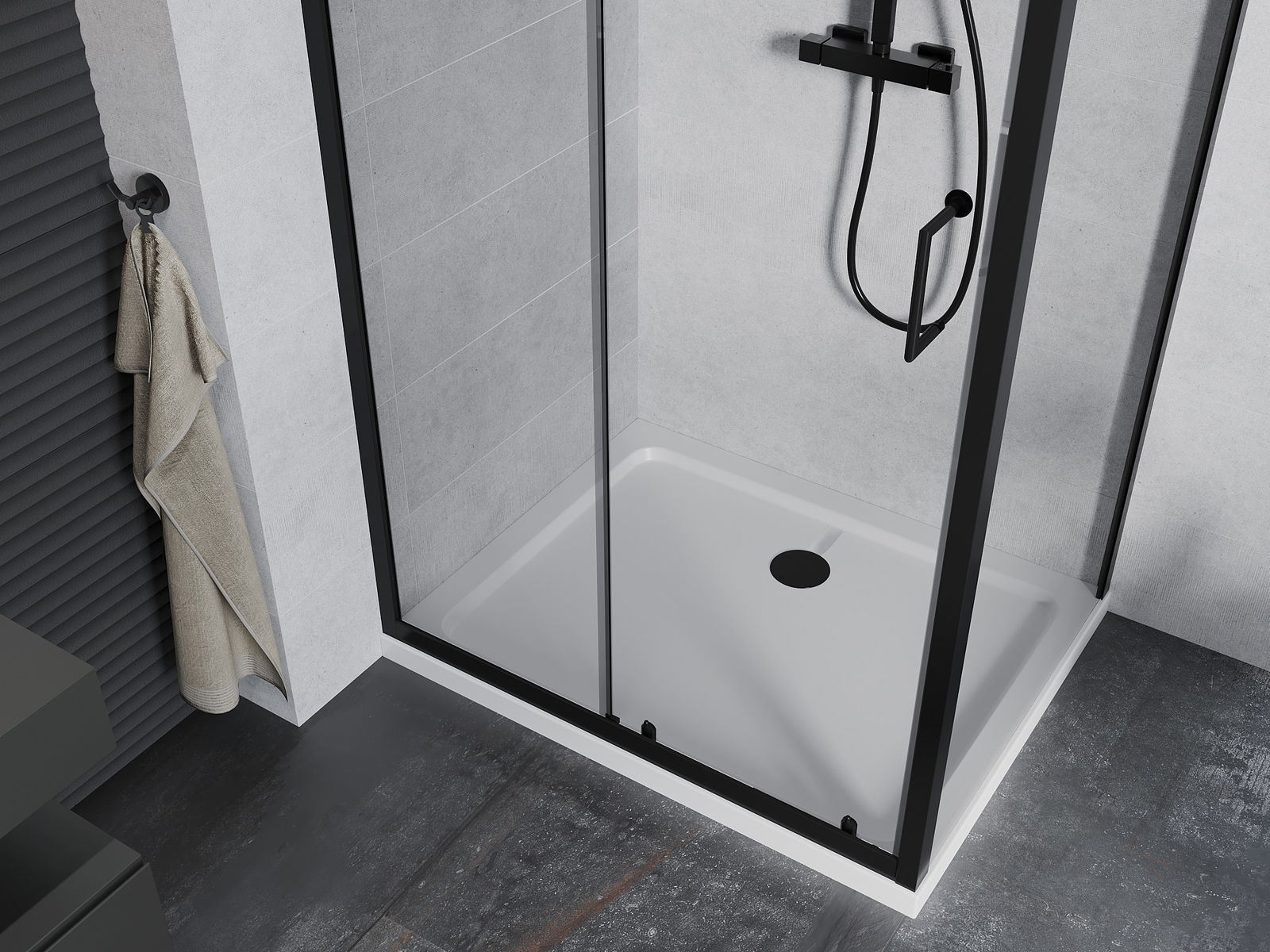 Mexen Apia tolóajtós zuhanykabin 140 x 100 cm, átlátszó, fekete + Flat zuhanytálca, fehér- 840-140-100-70-00-4010B