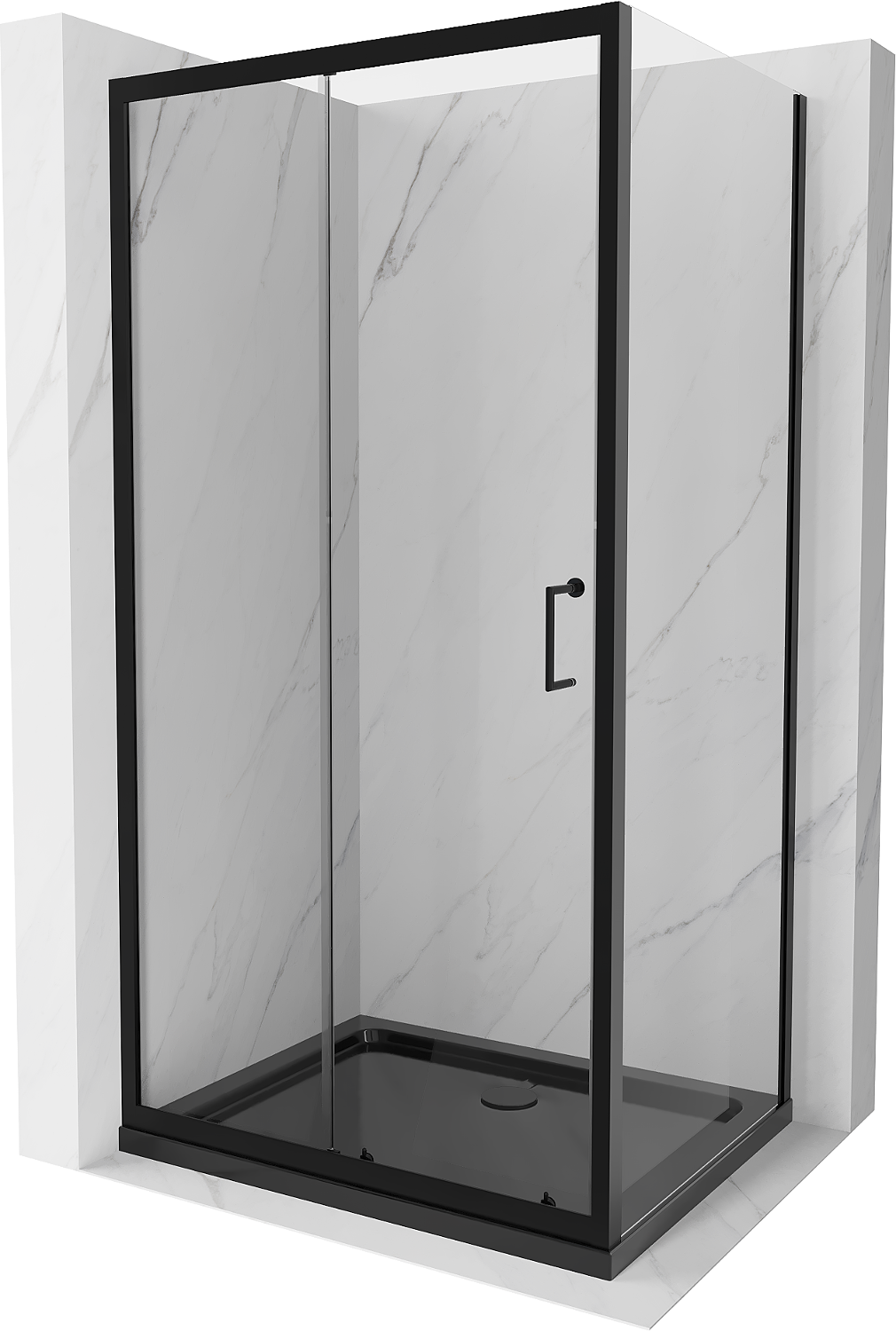 Mexen Apia tolóajtós zuhanykabin 100 x 90 cm, átlátszó, fekete + Flat zuhanytálca, fekete - 840-100-090-70-00-4070B